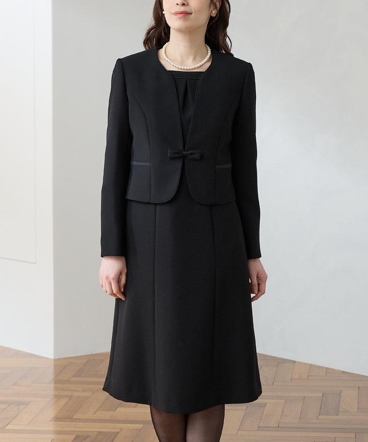 端にパイピングをあしらったシンプルなノーカラーデザイン。
