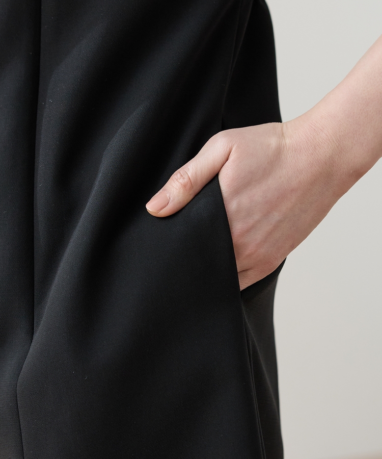 シワになりにくく、ストレッチのきいたさらりとした風合いの素材。洗濯機で洗えるウォッシャブル。