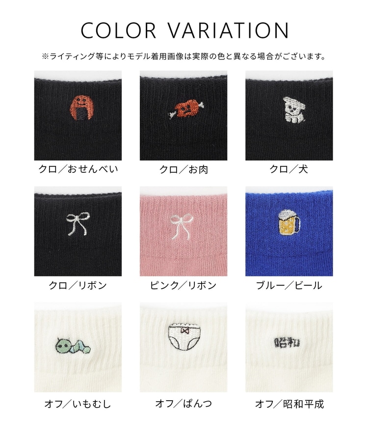 食べ物やアニマルなどのほっこりユニークなワンポイント刺繍。