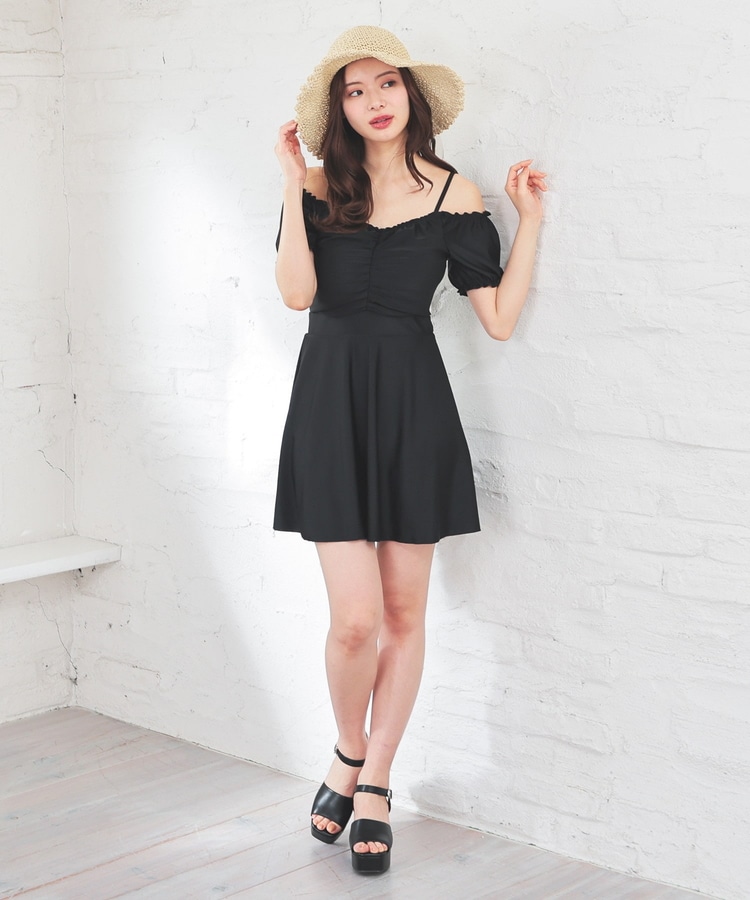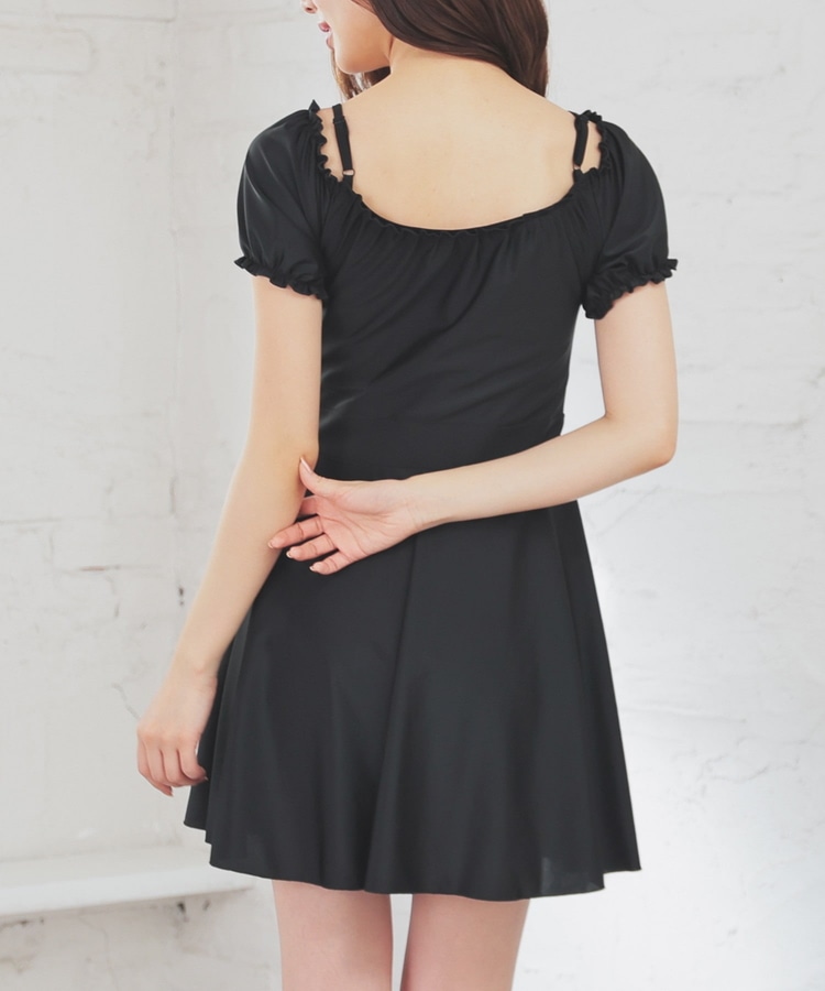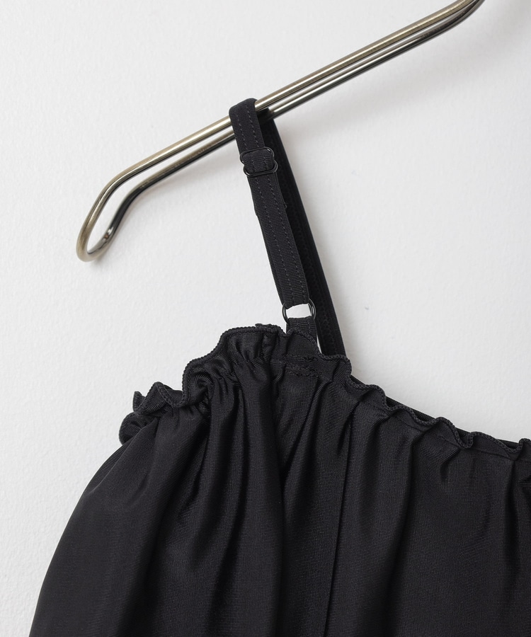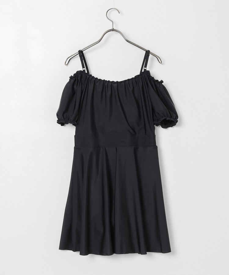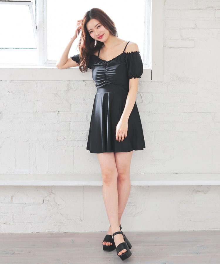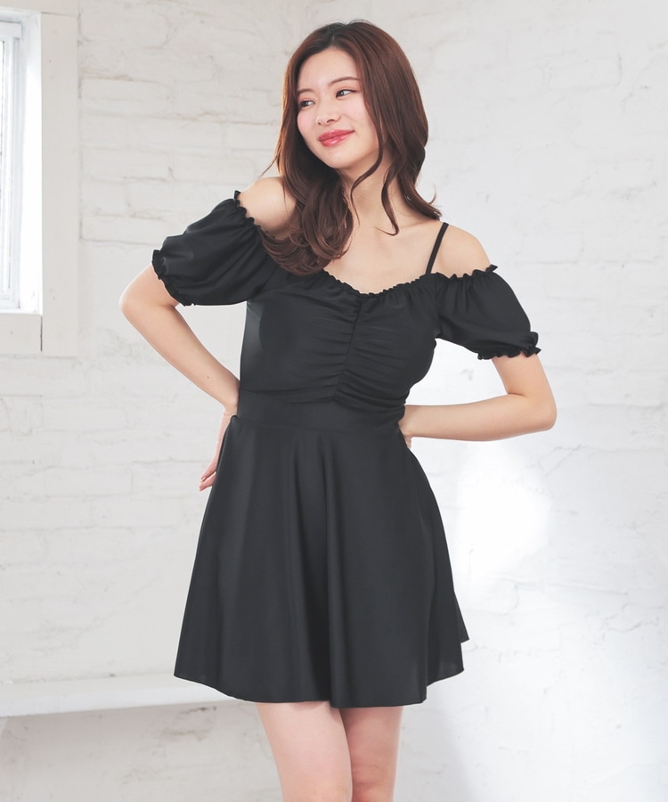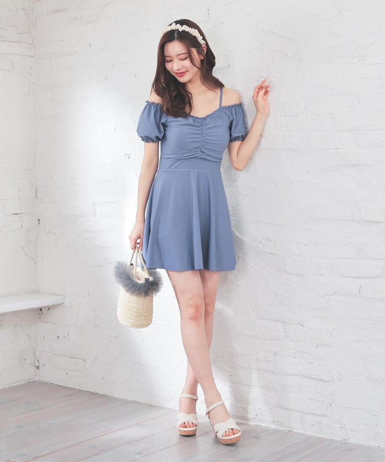 ふんわり広がるフレアシルエットに、胸元のギャザーがアクセント。