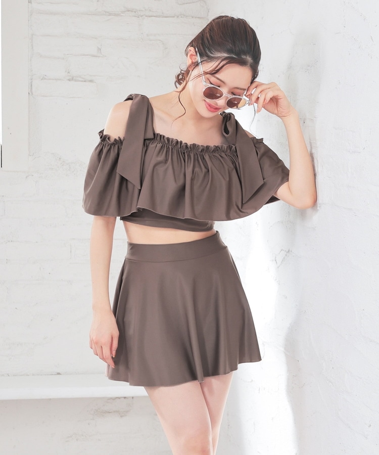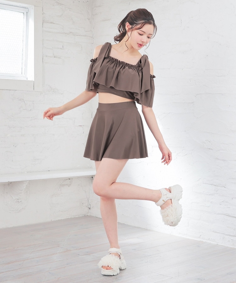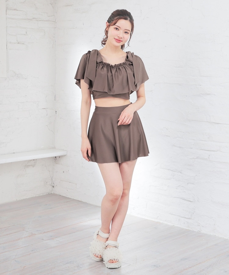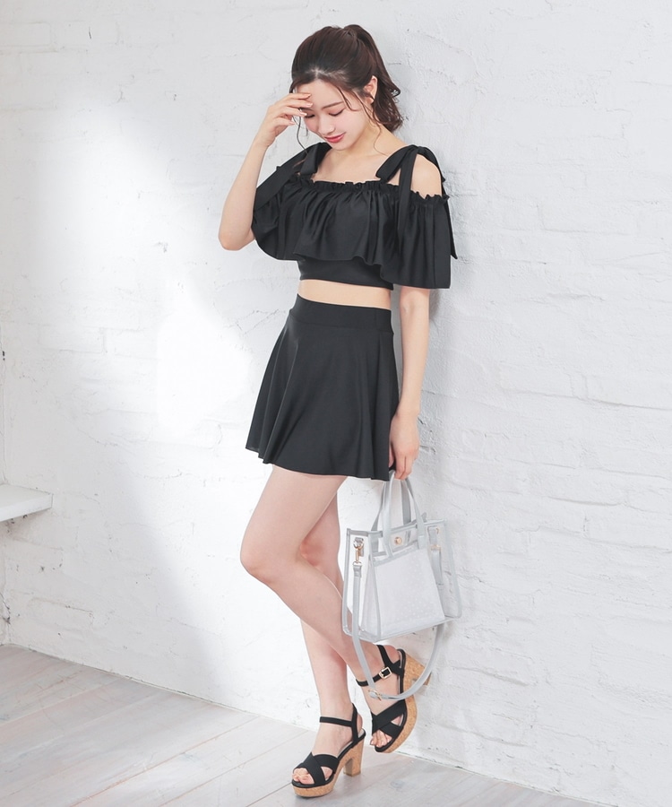 露出が控えめなのが嬉しい、洋服見えする上下2点セット。