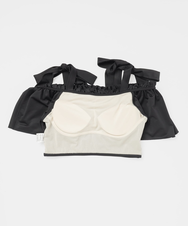 華奢見えが叶う、大きめな肩ひもリボンは、固定されていてほどけず安心。