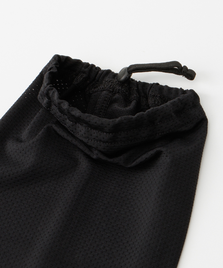袖口ゴムと中指ループ付きでズレにくく、腕側はドローコードで調整可能。