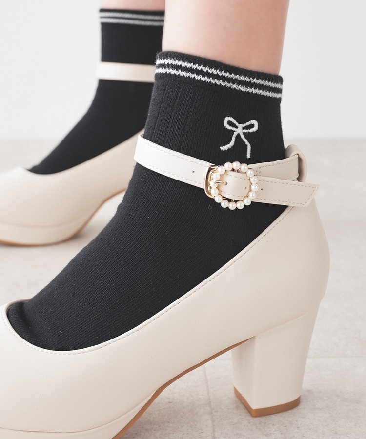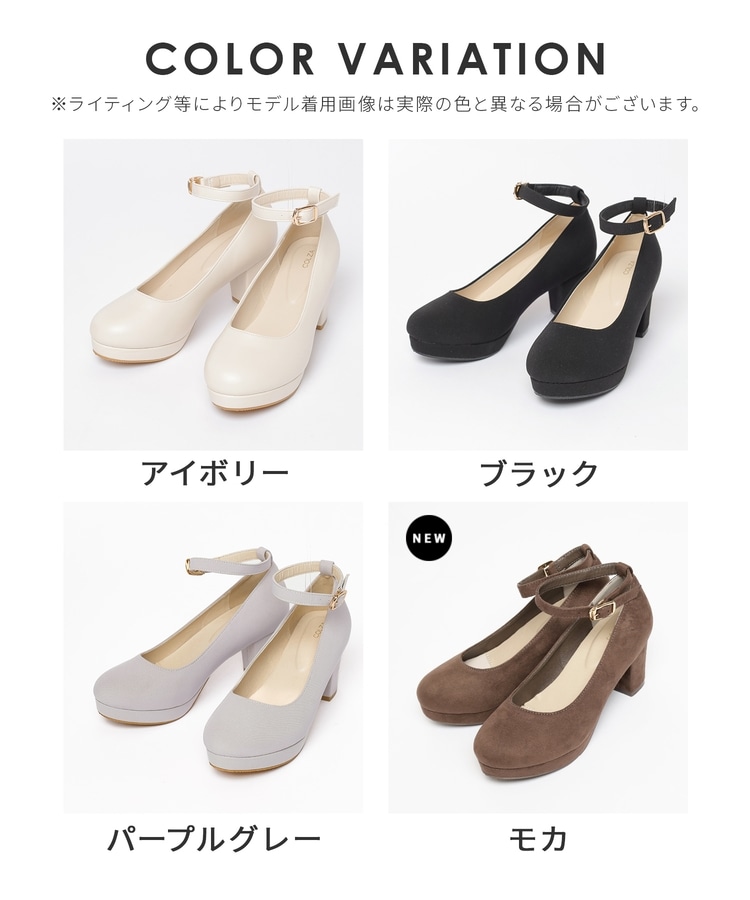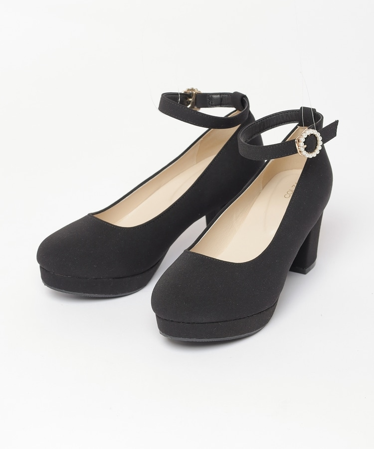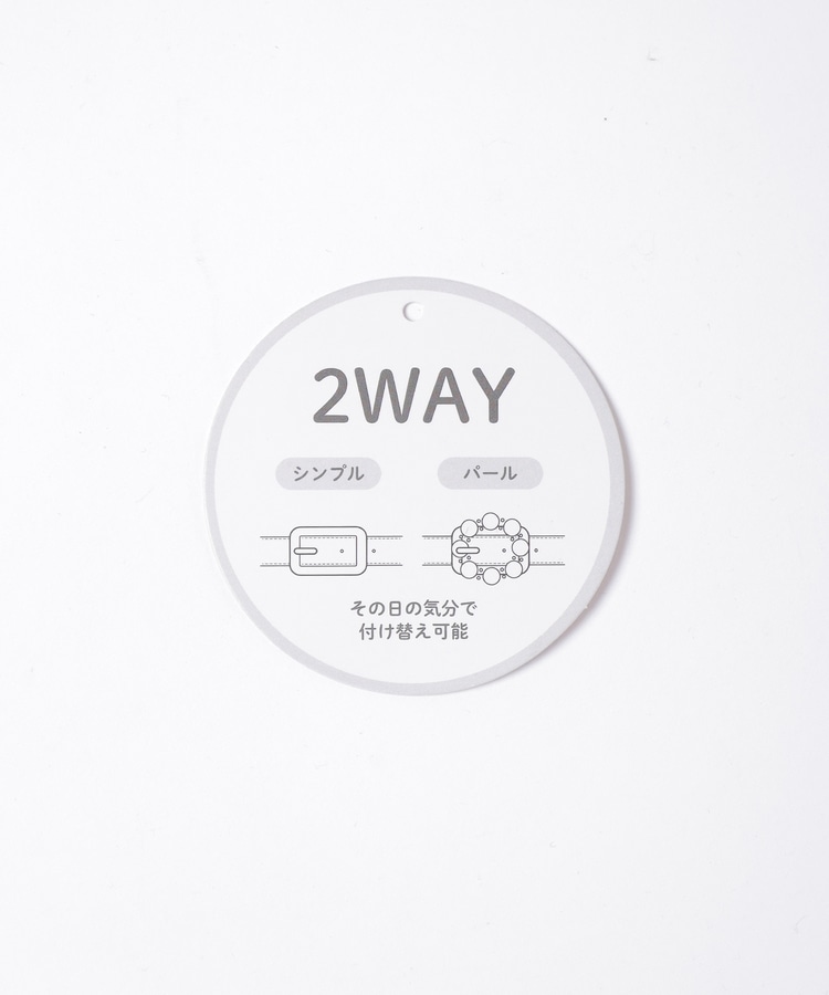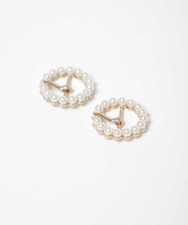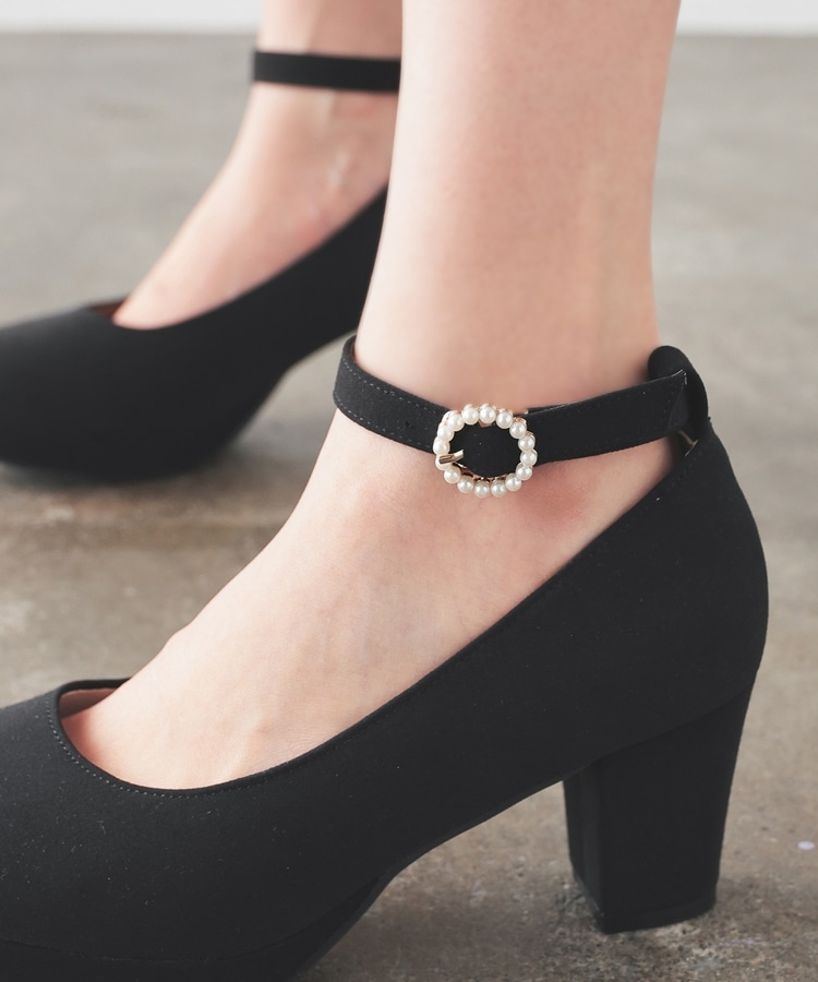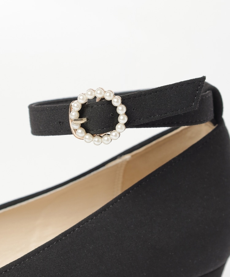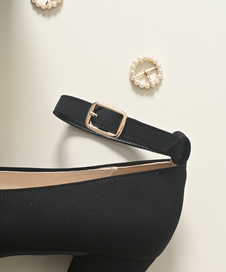 ストラップのバックルが、シンプルな角バックルとパールビジューバックルの2種類。
