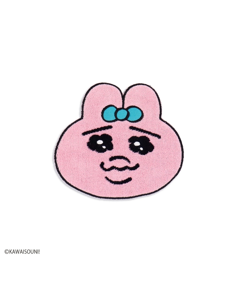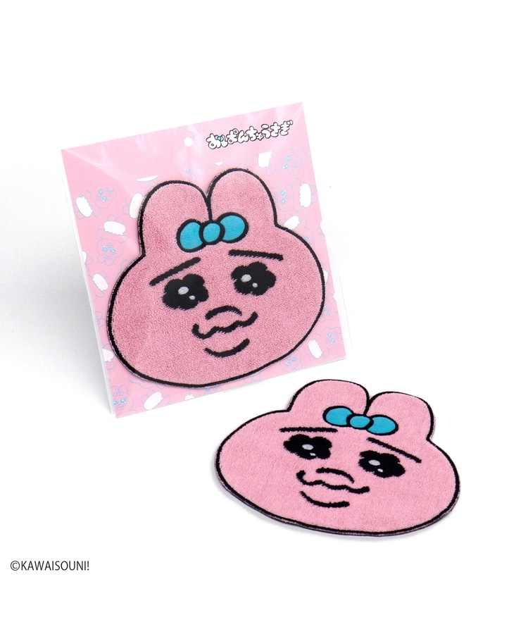 今にも泣きそうなキュートな表情のおぱんちゅうさぎの顔がデザインされたダイカットタオル。