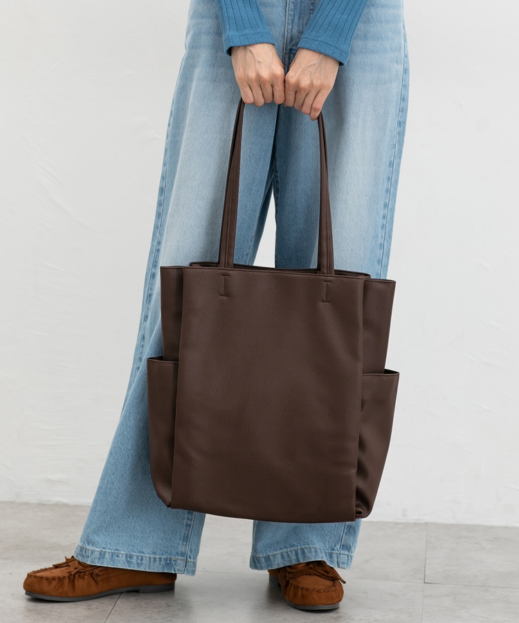 きちんと感のあるやわらかなフェイクレザー素材。