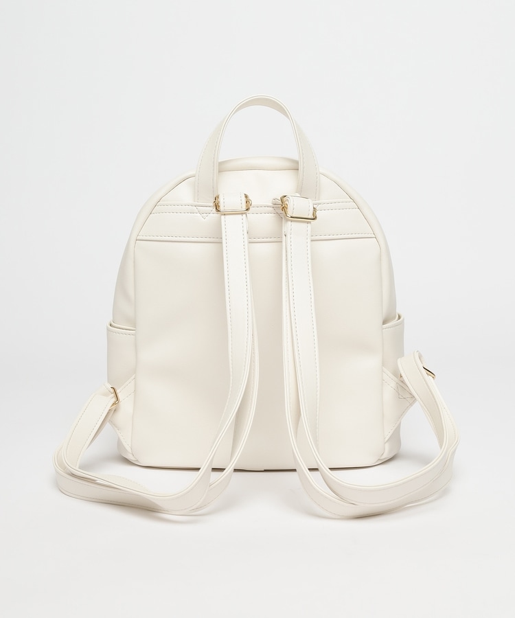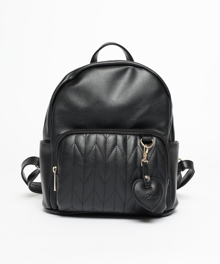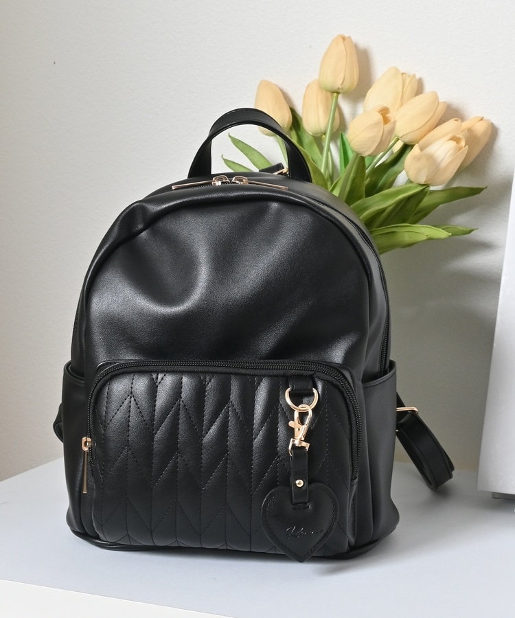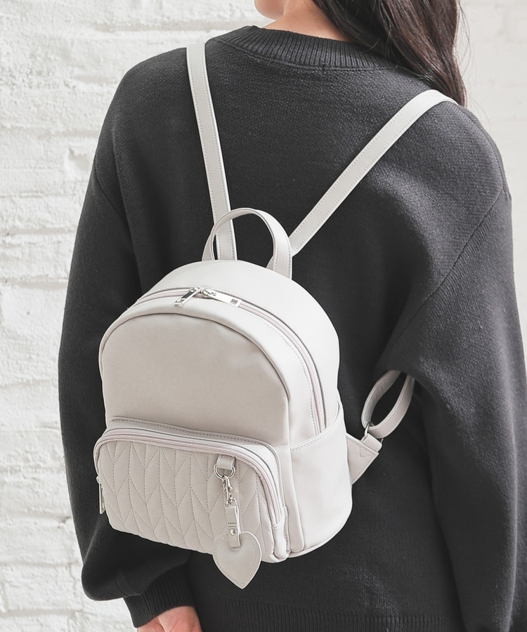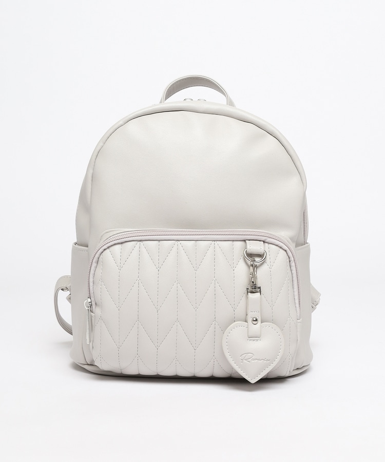 ポケットのステッチとハートモチーフのチャームがアクセント。