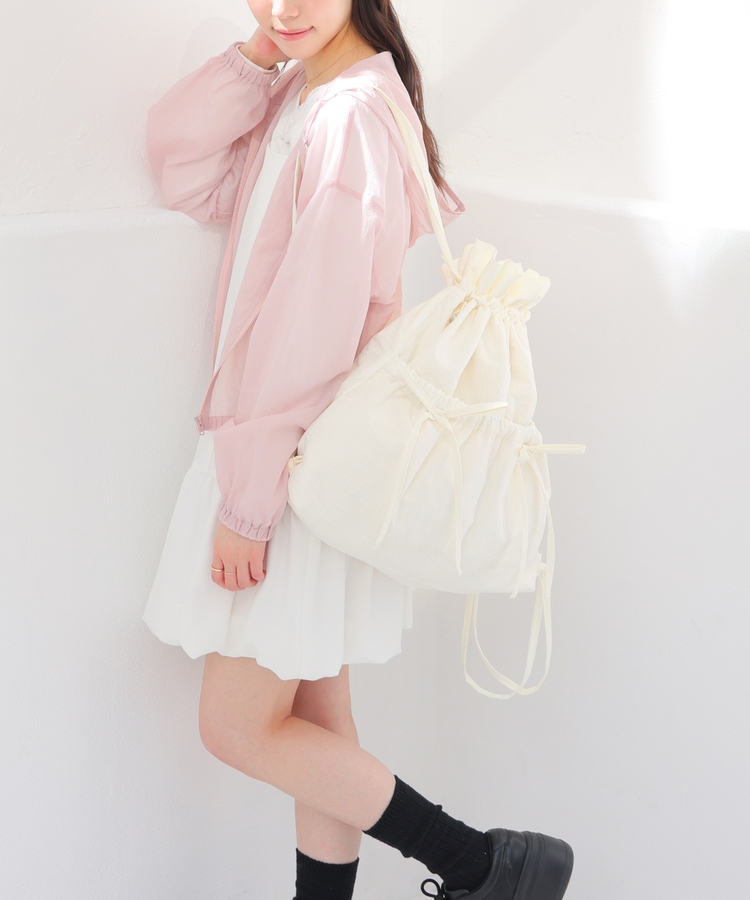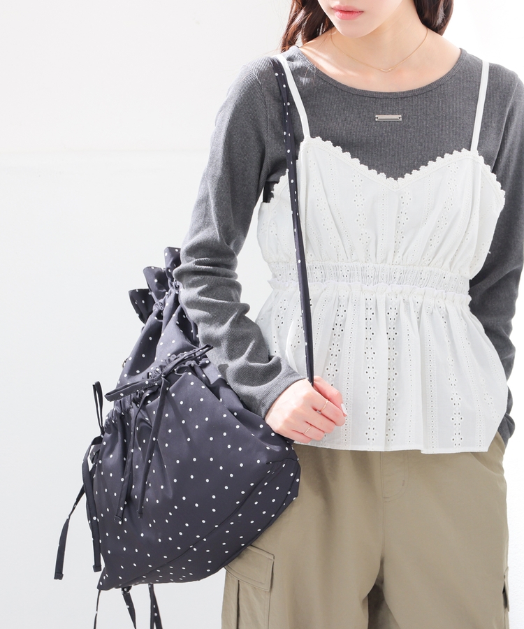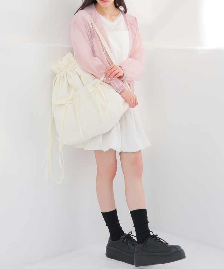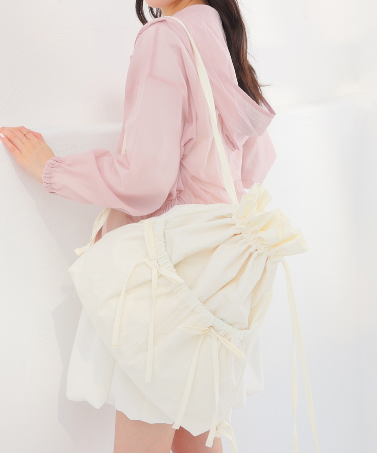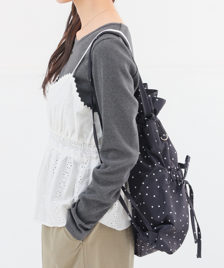 ダブルポケットにリボンが付いたキュートなデザイン。