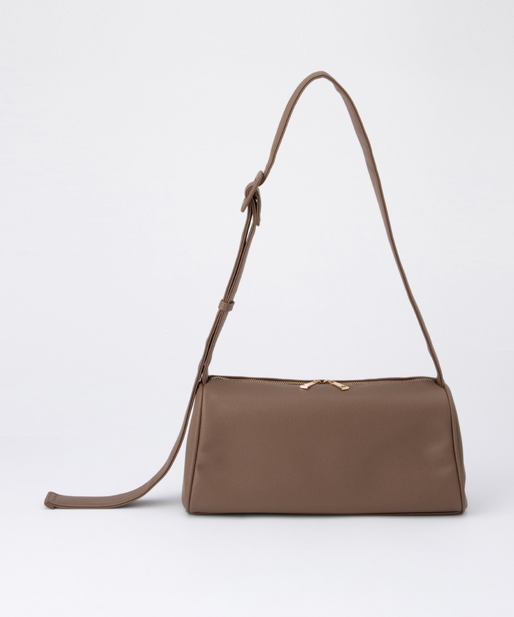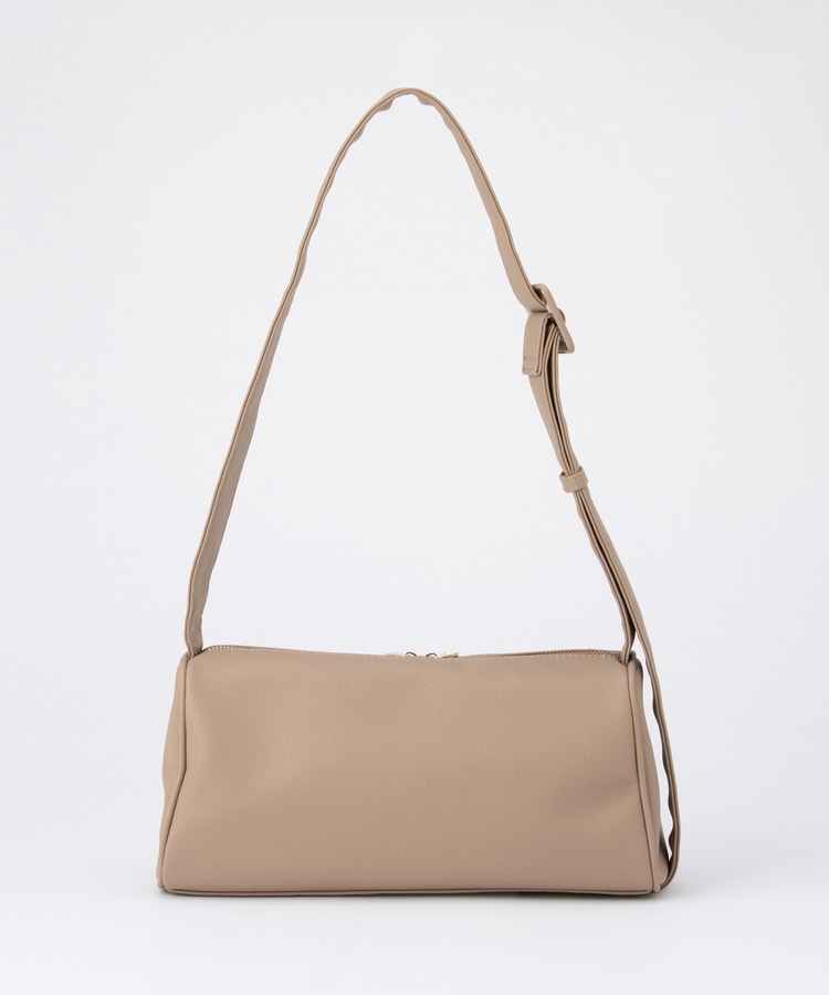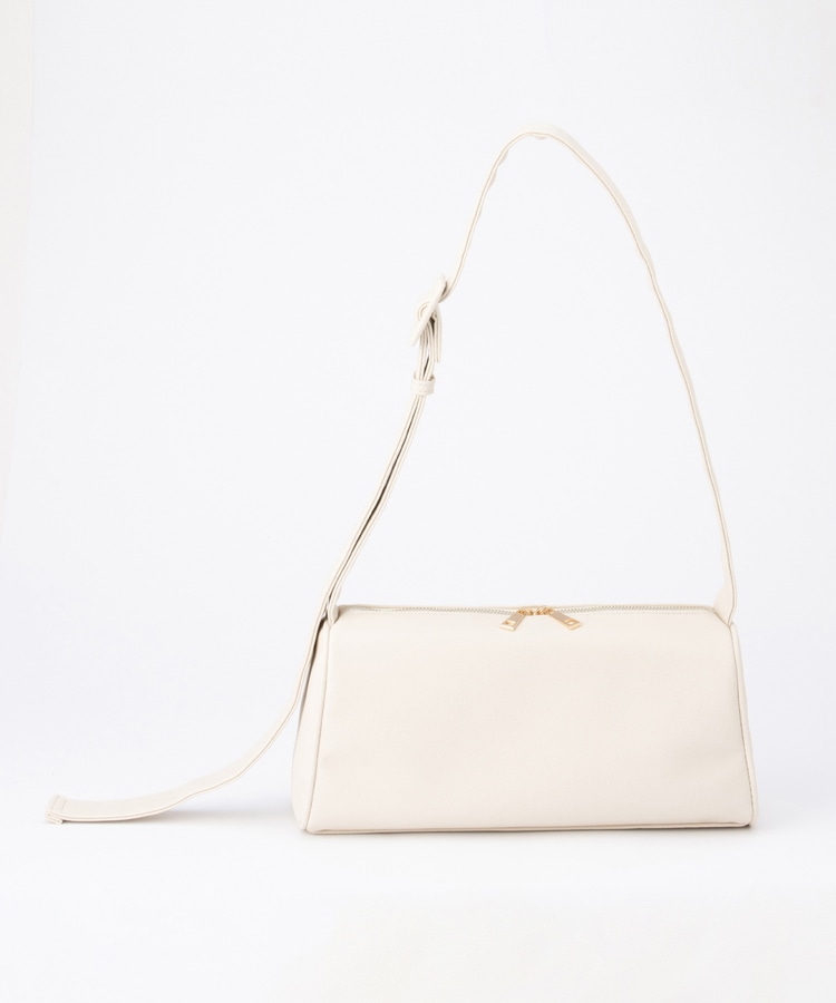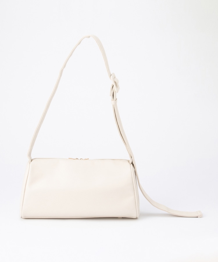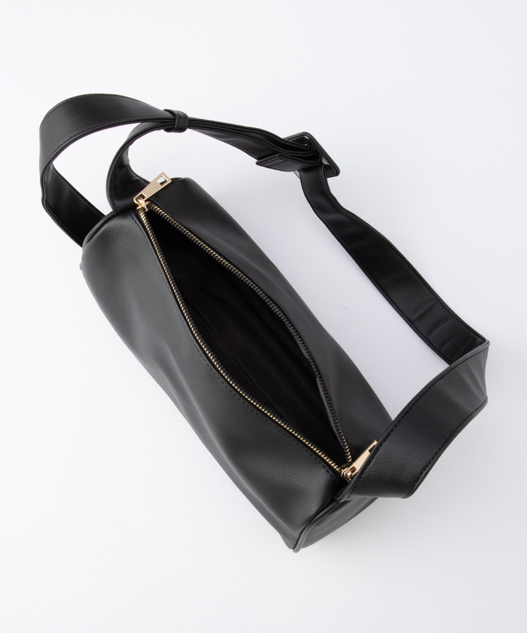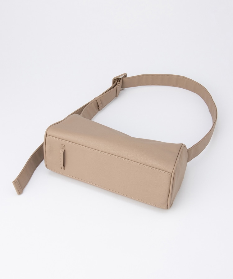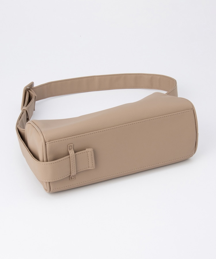 長さ調整可能なショルダーは、縮めたときに端を底面のループに通してすっきり収納可能。