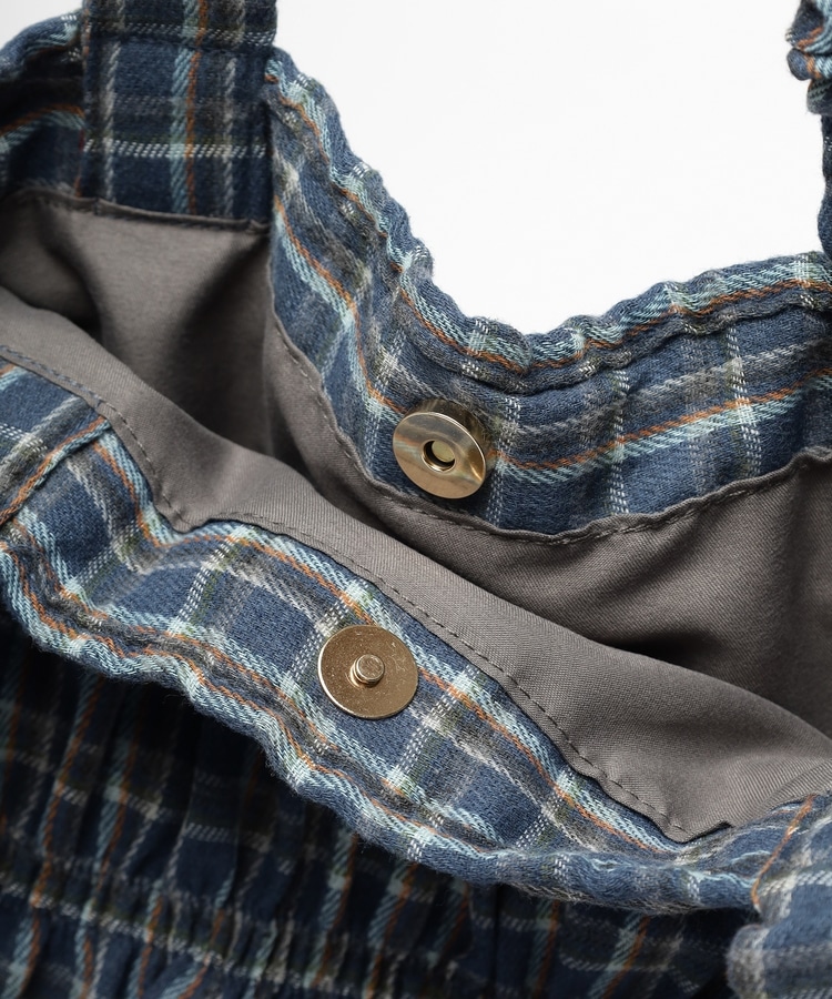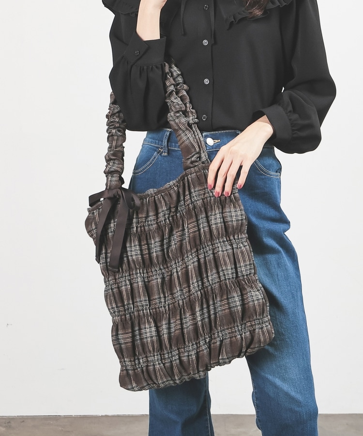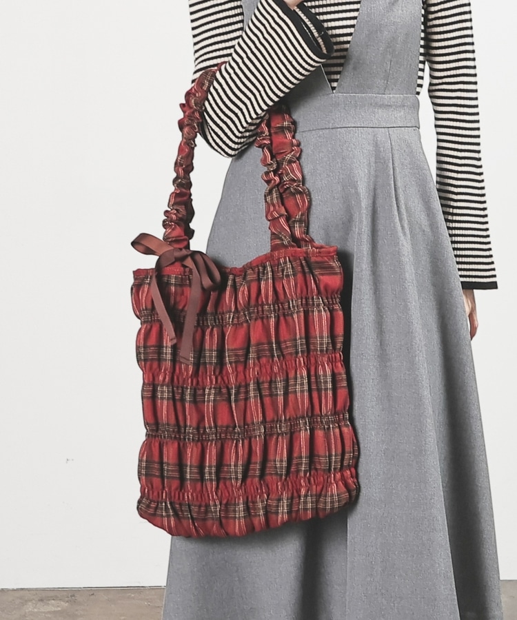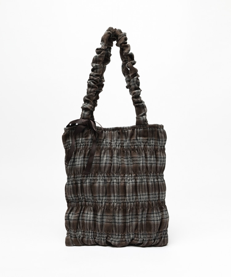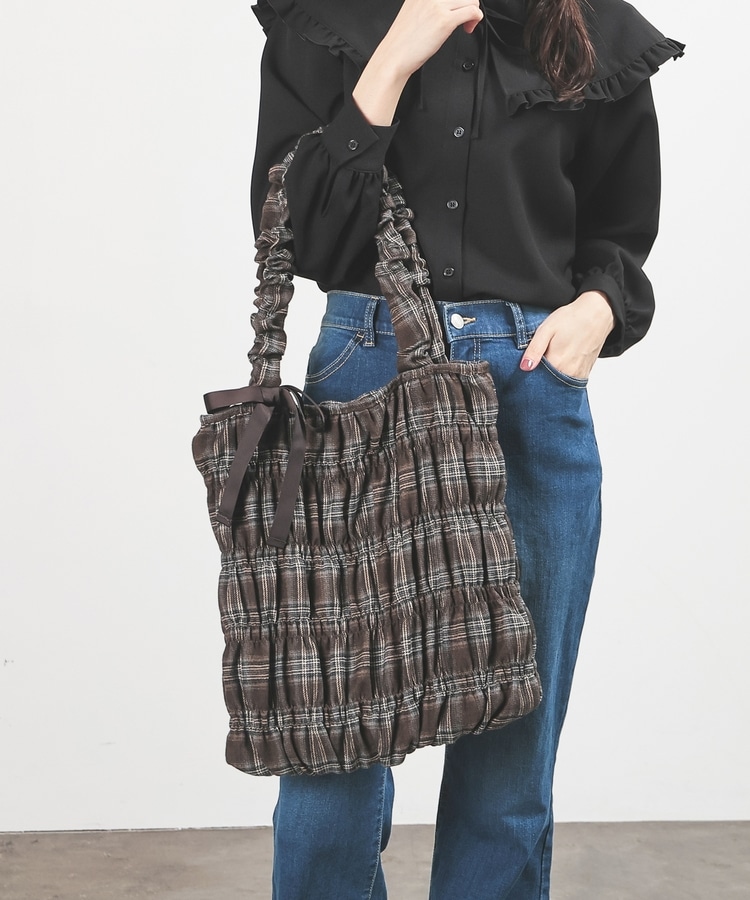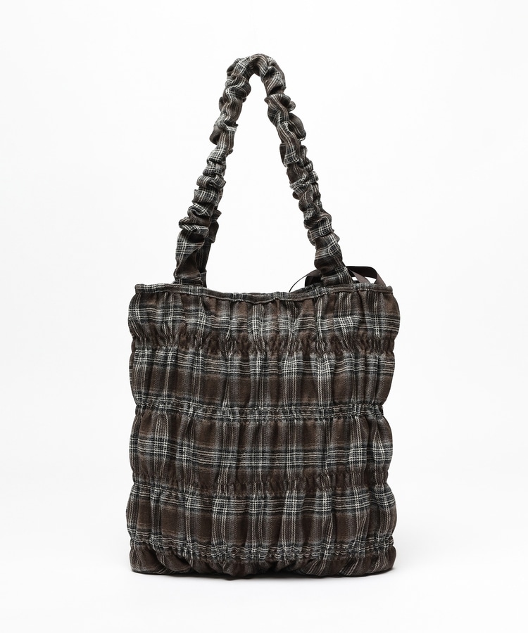 チェック柄ギャザートート