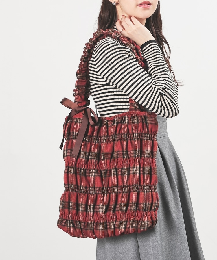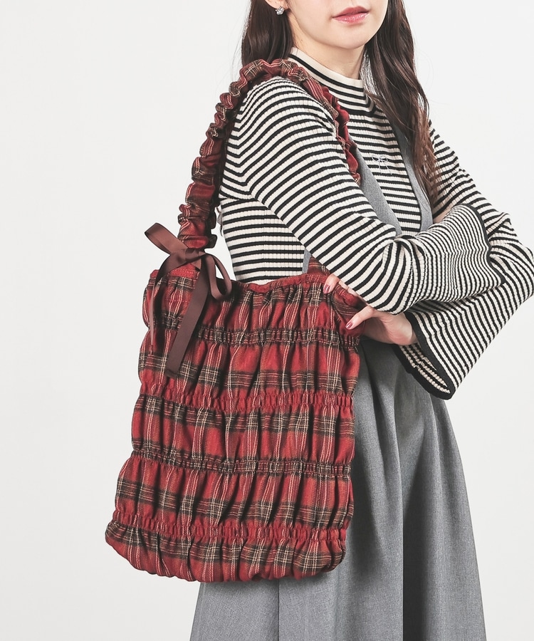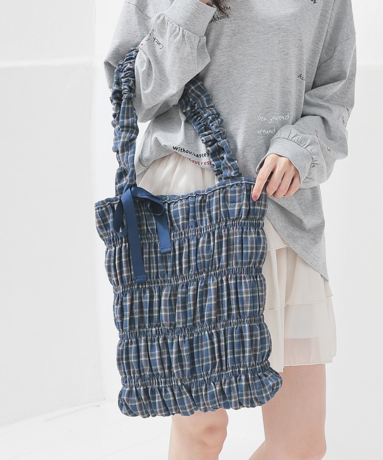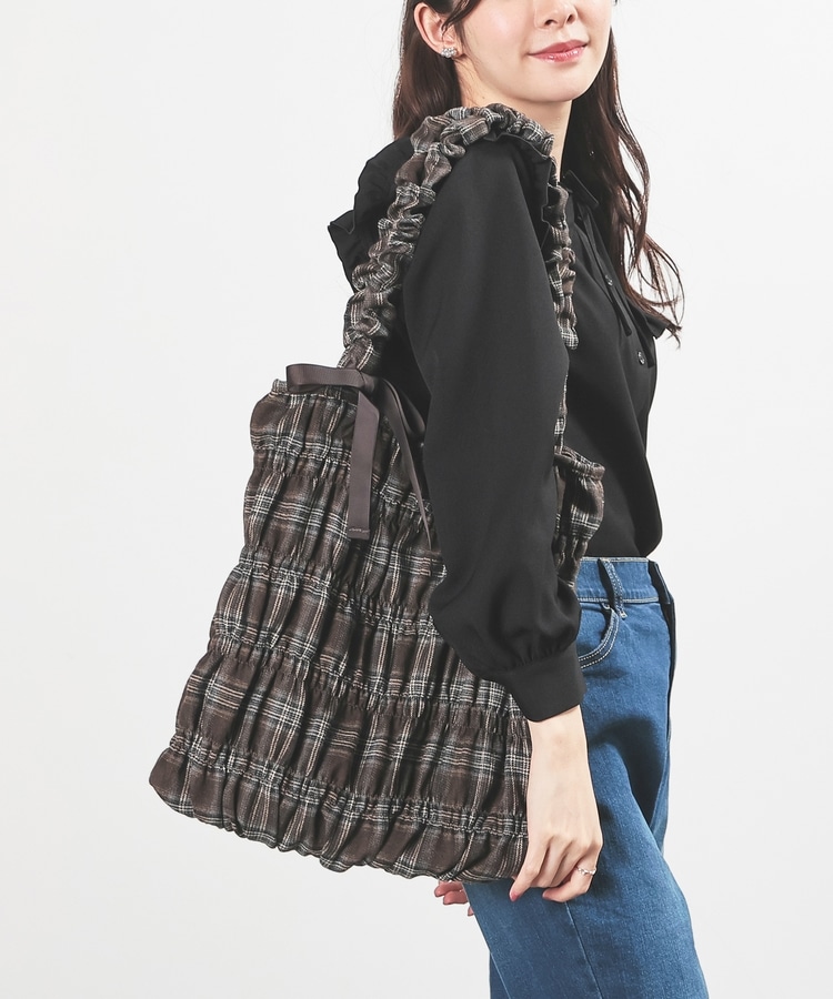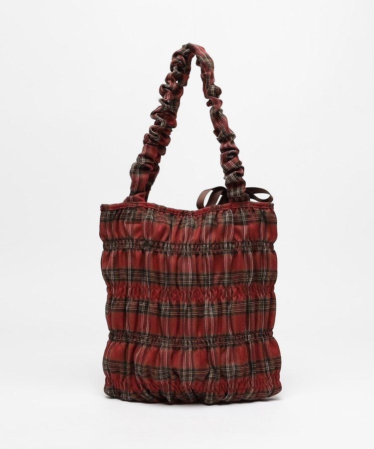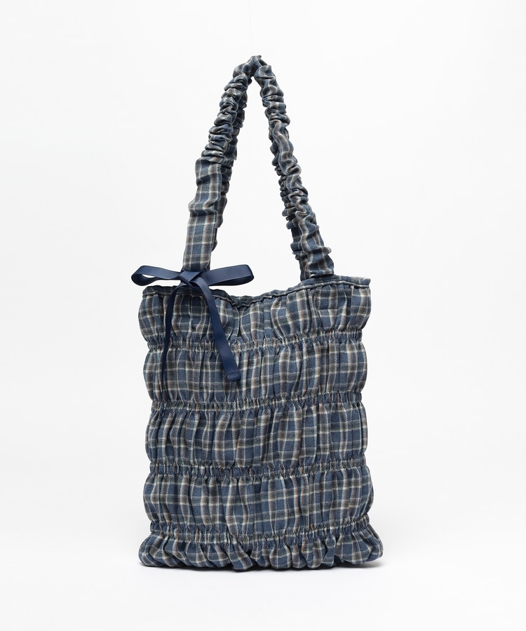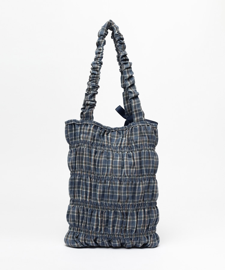 チェック柄ギャザートート