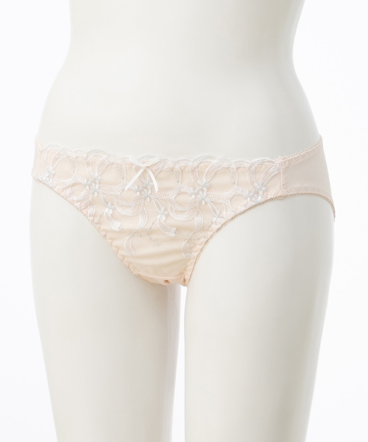 ラメ入りのリボン柄刺繍がフェミニンなデザイン。