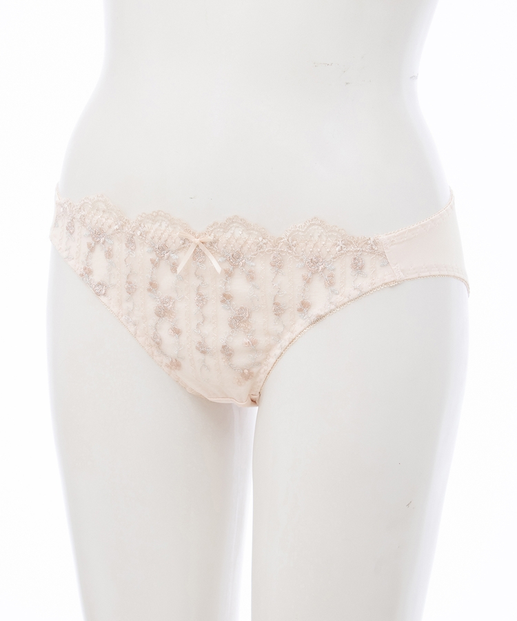 ラメ入りのバラ柄刺繍がフェミニンなデザイン。
