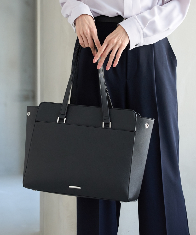 A4サイズ対応の大きめサイズ&バッグと同色のPCポーチ付きで実用性抜群。