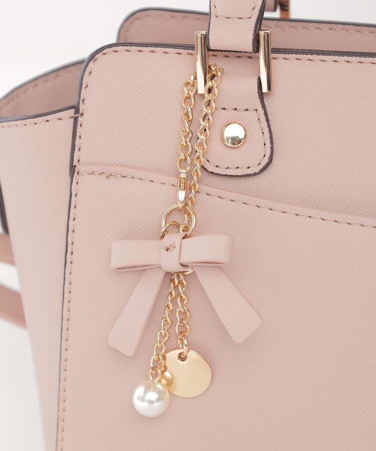 リボンモチーフのチャーム付きでフェミニン感UP。