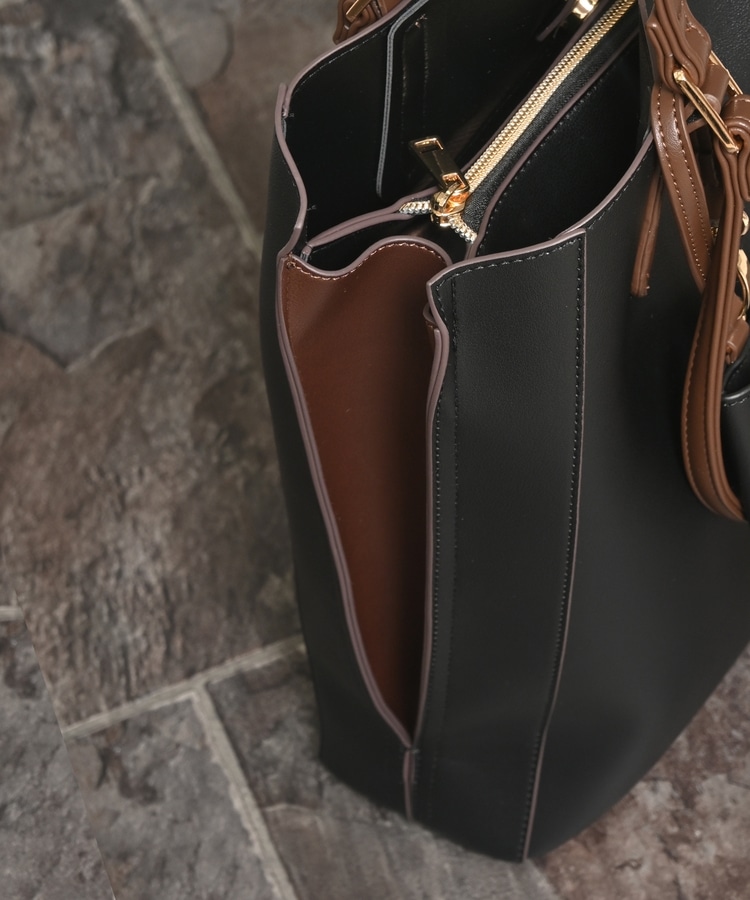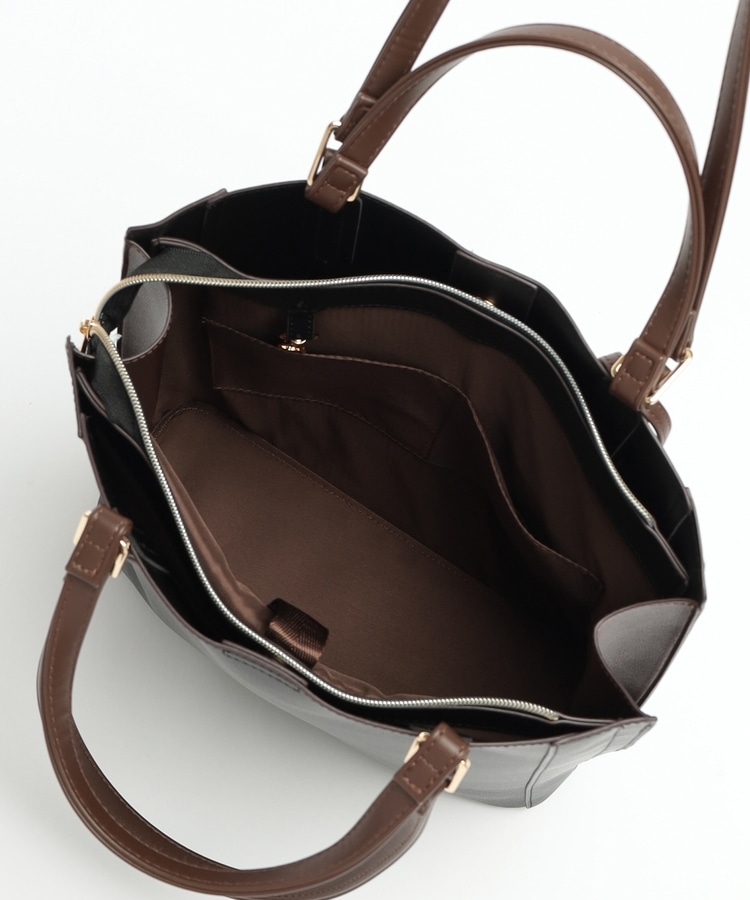 長さの異なる持ち手付きで肩掛けにもなる2Way仕様。