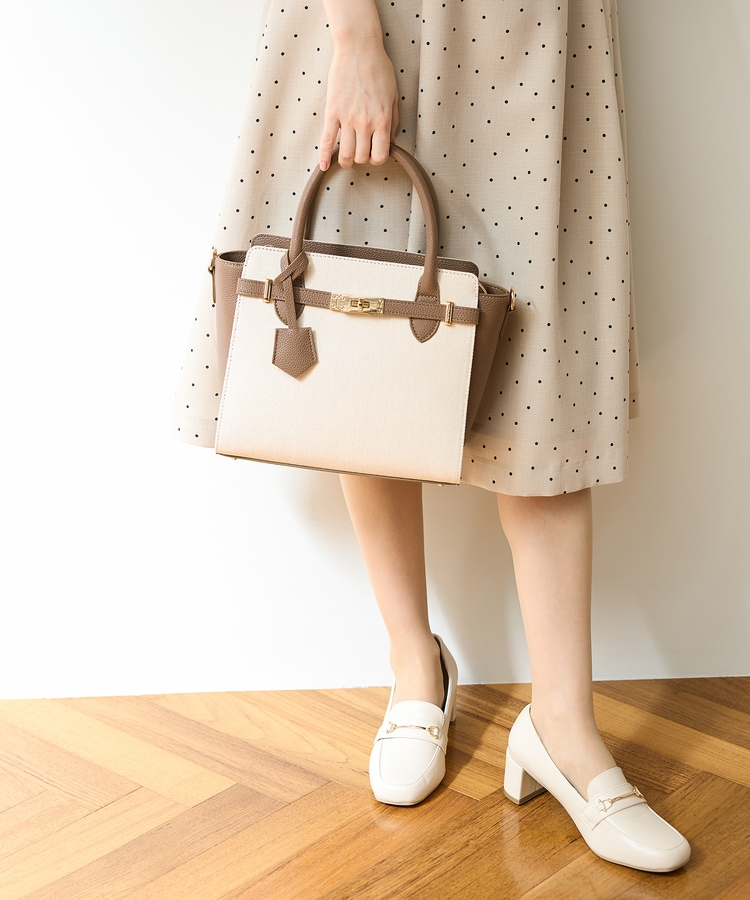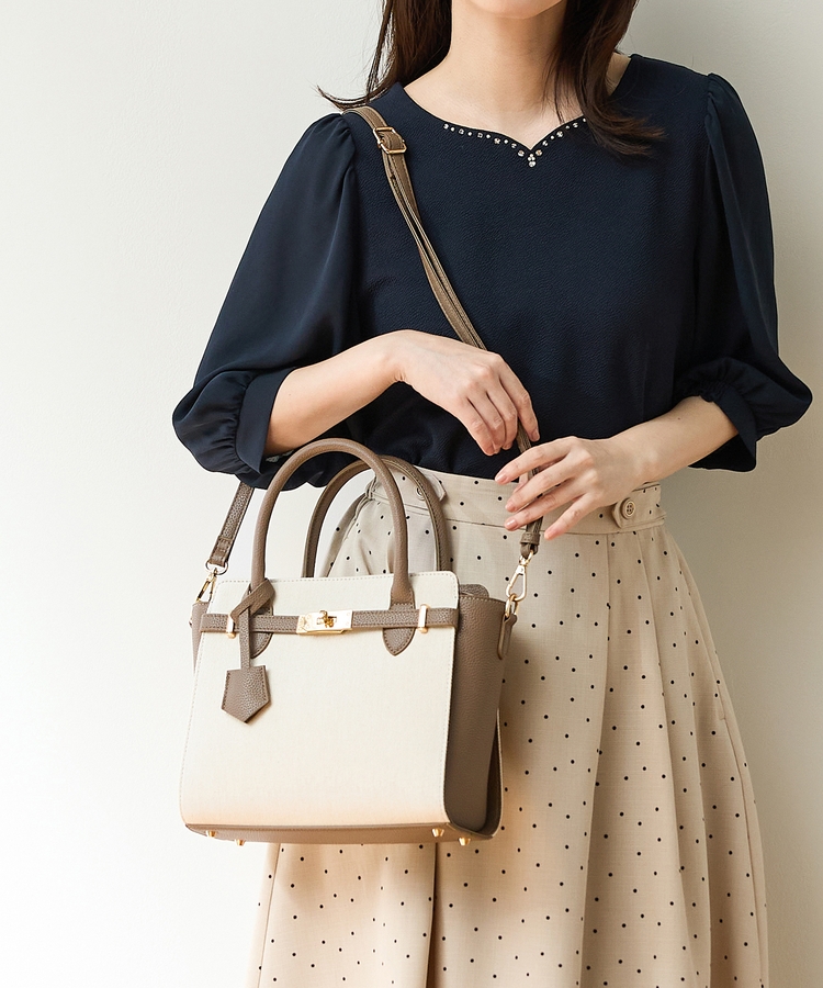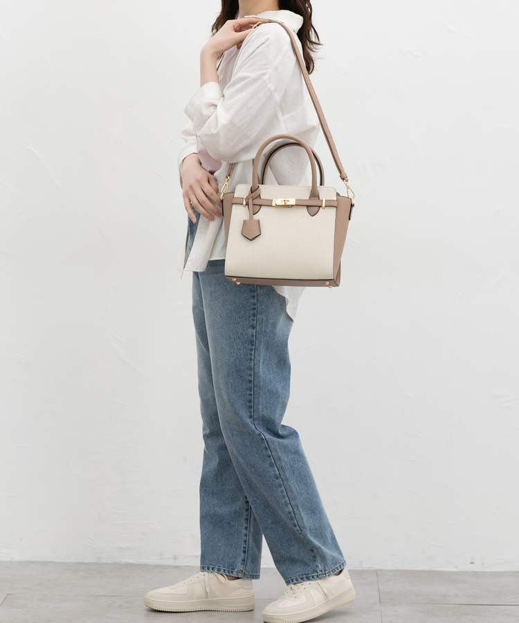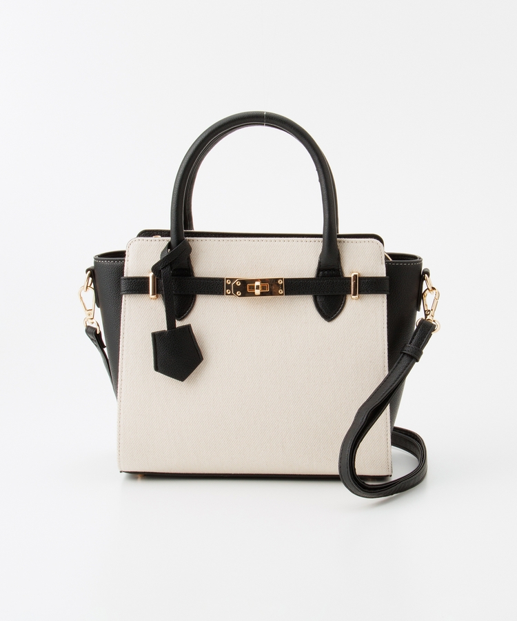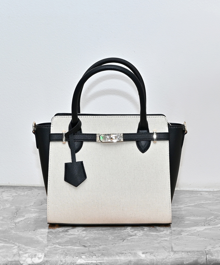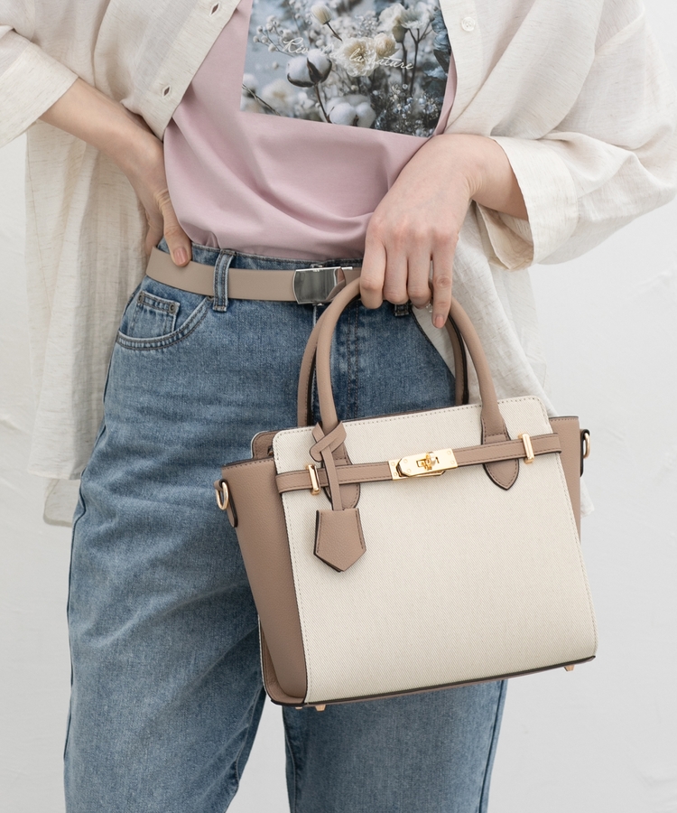 合皮コンビハンドバッグ