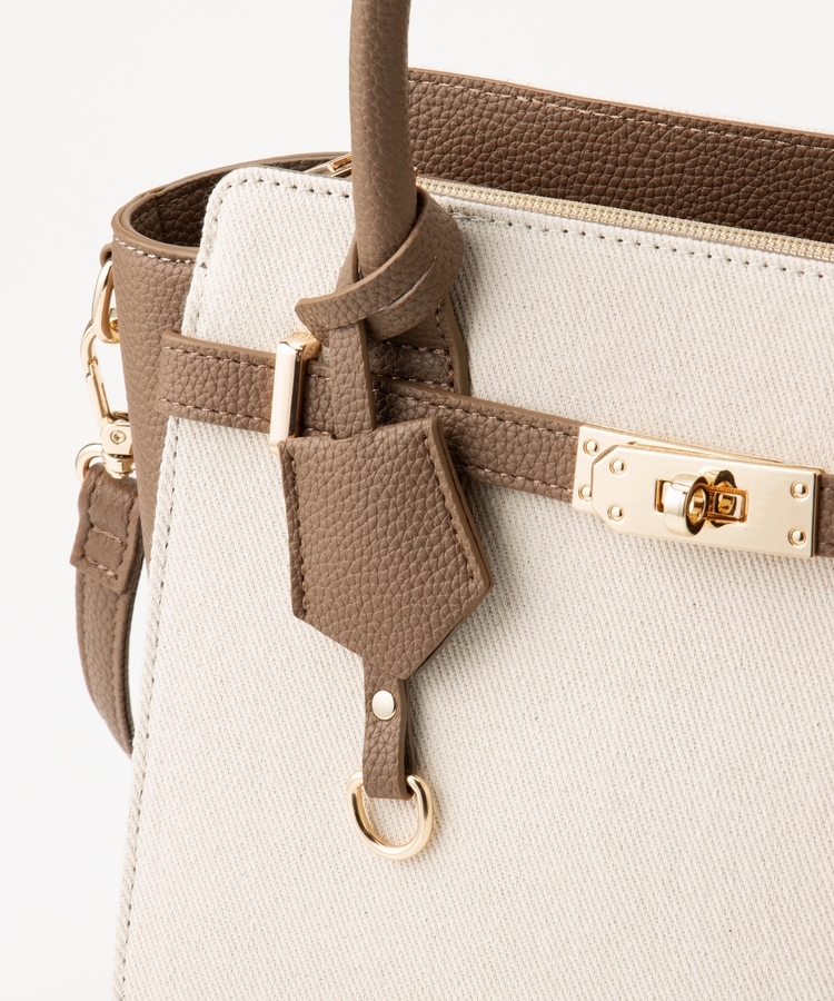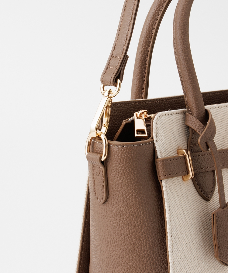 キャンバス生地とフェイクレザーのコンビネーションデザイン。