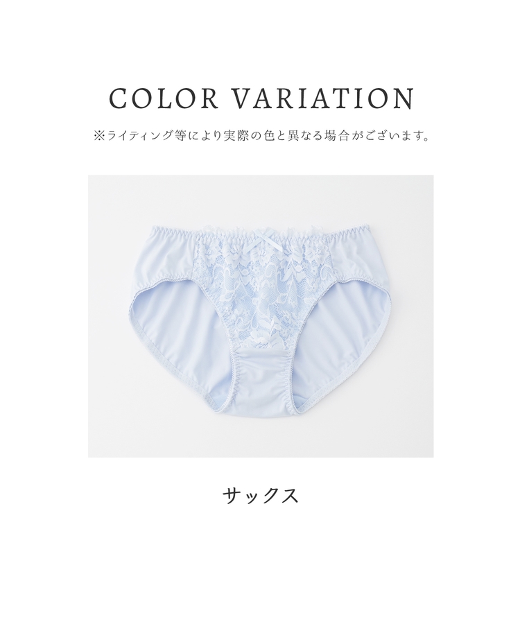 フロントの花柄レースがフェミニンなショーツ。