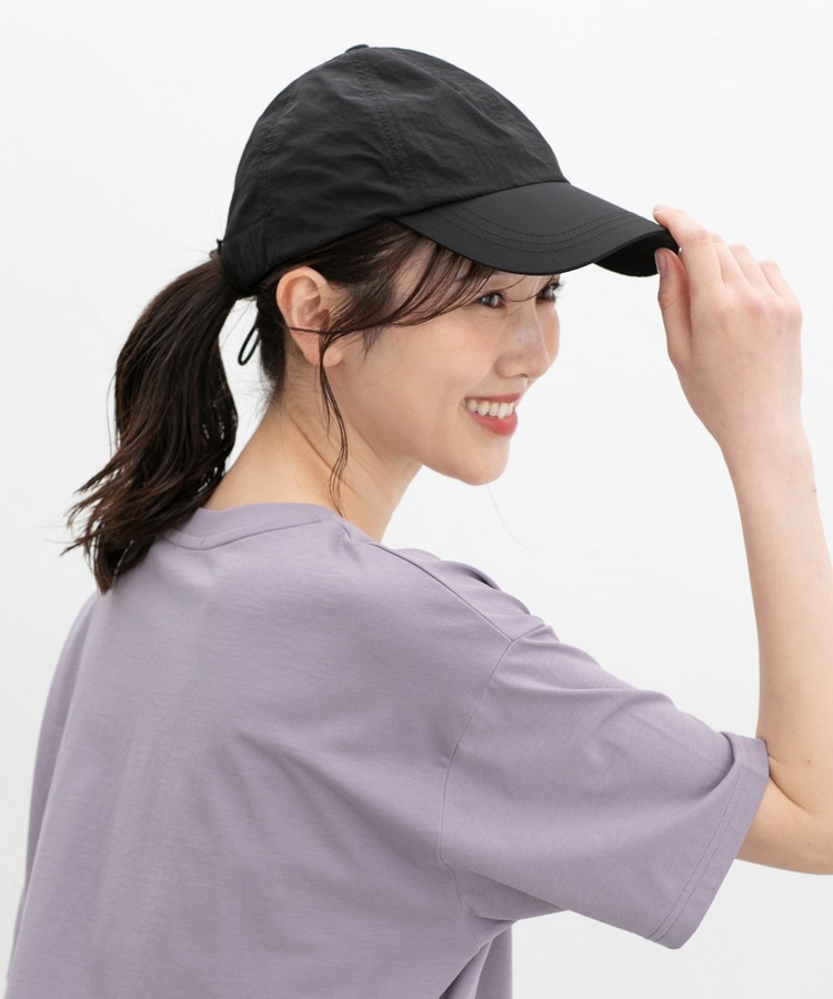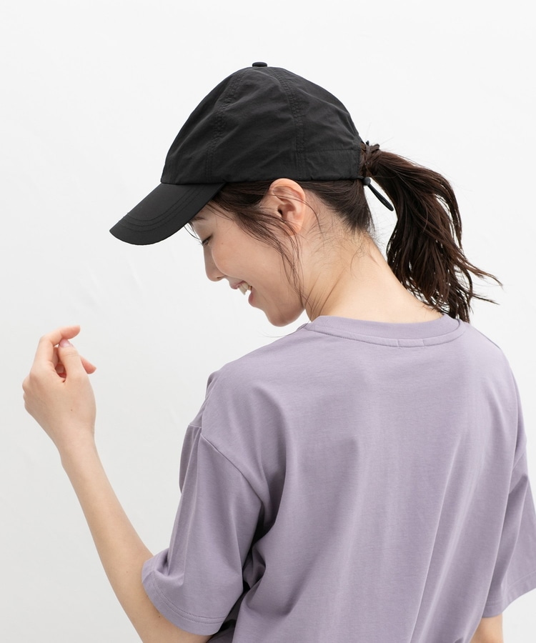 シンプルな無地キャップにドロストデザインを取り入れて、トレンドライクにアップデート。