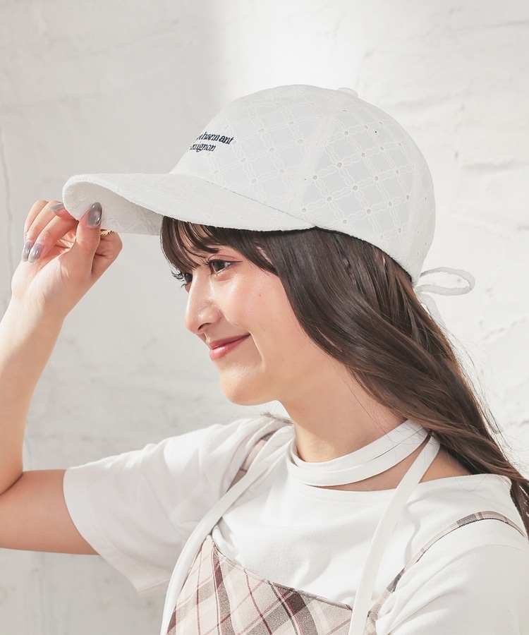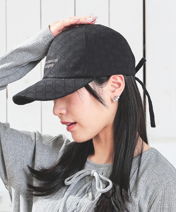 カジュアルな印象のキャップながら、バッグリボンがさりげなくガーリーなデザイン。