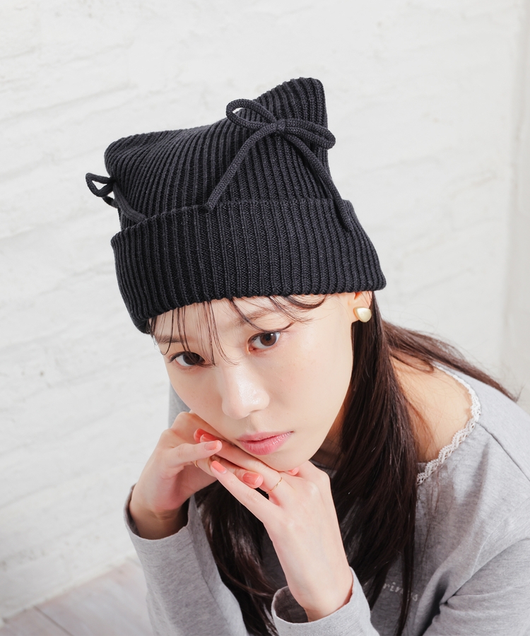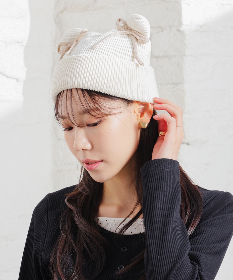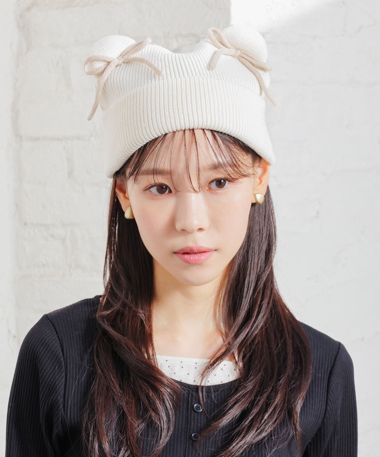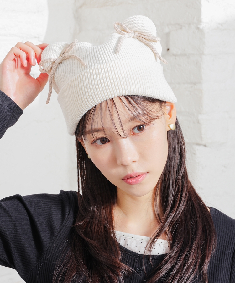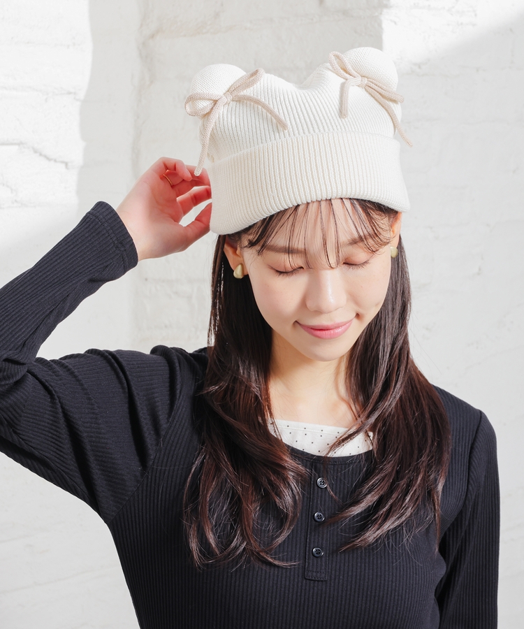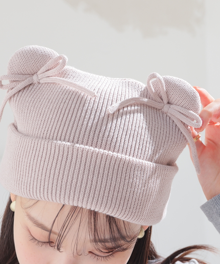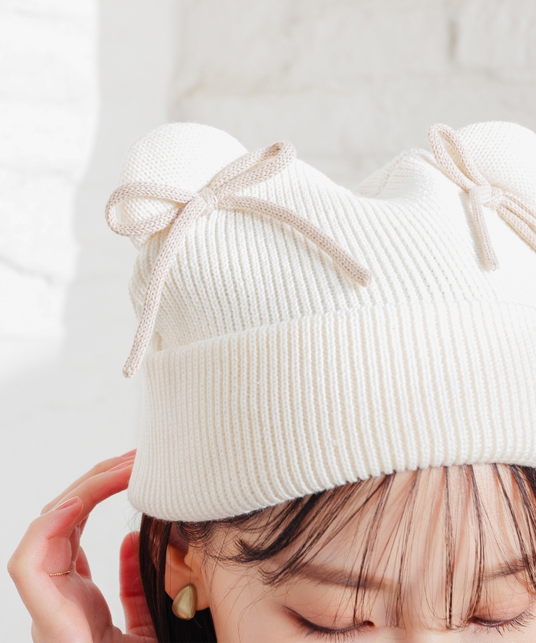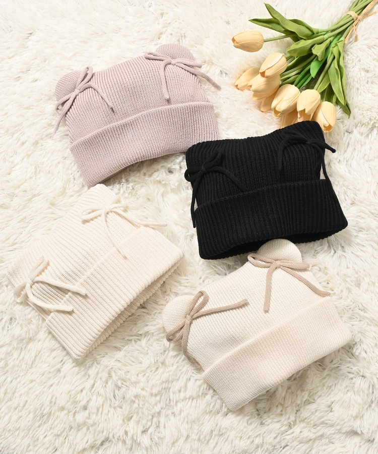 リボン付アニマルニット帽