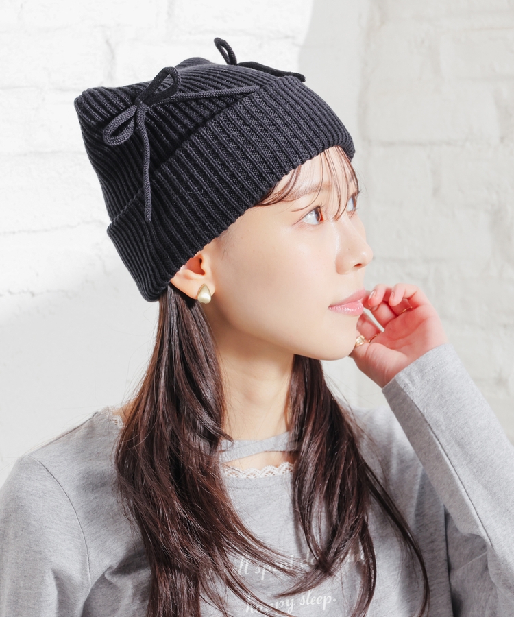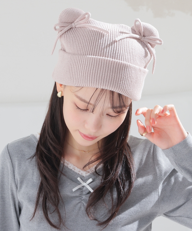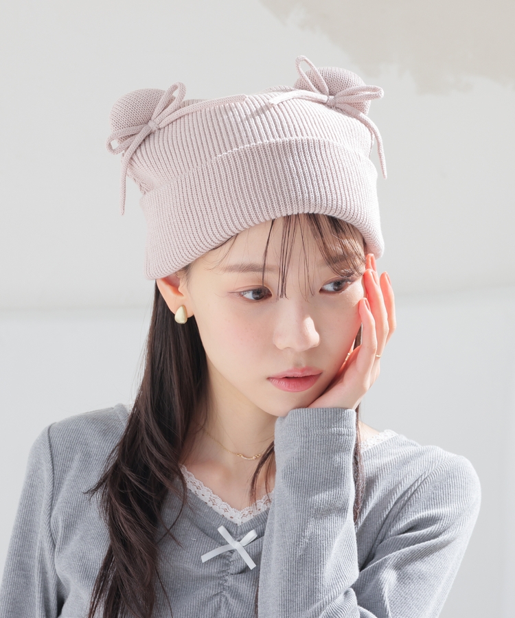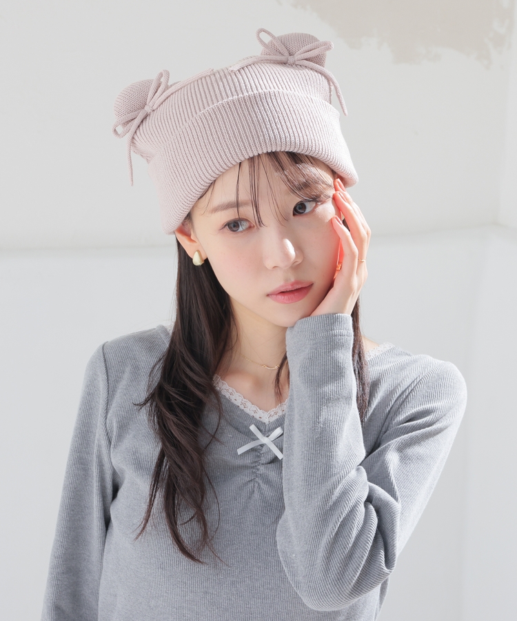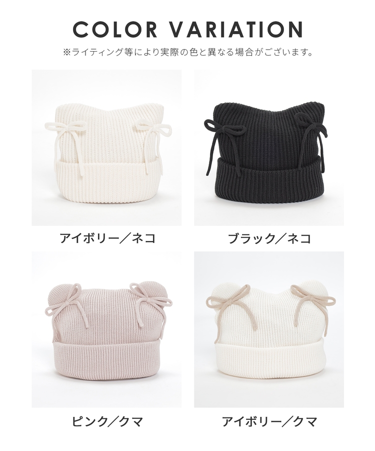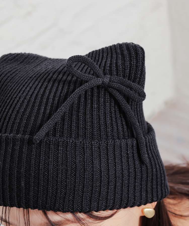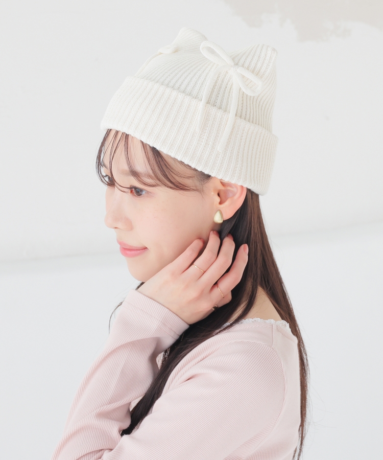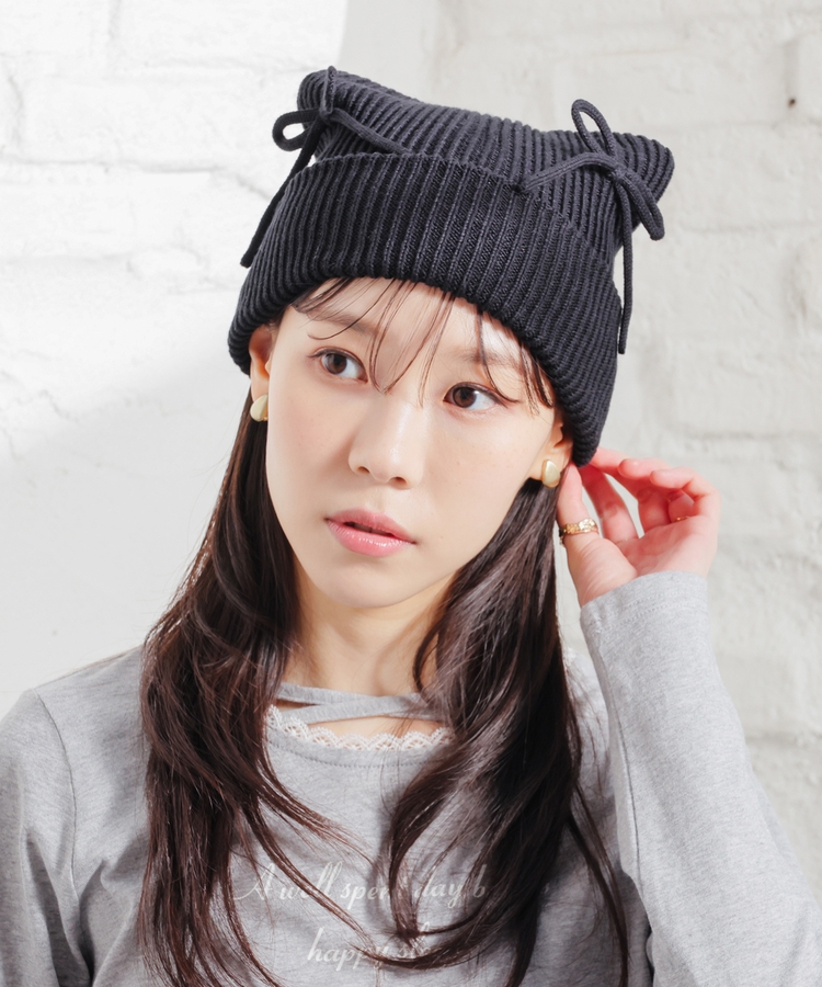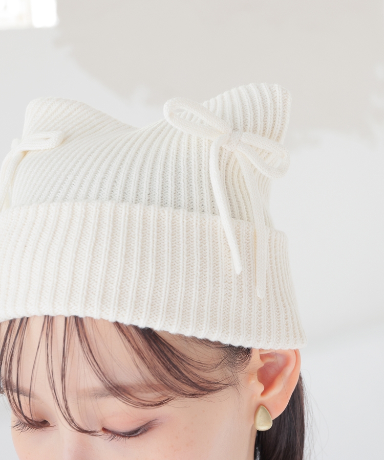 リボン付アニマルニット帽