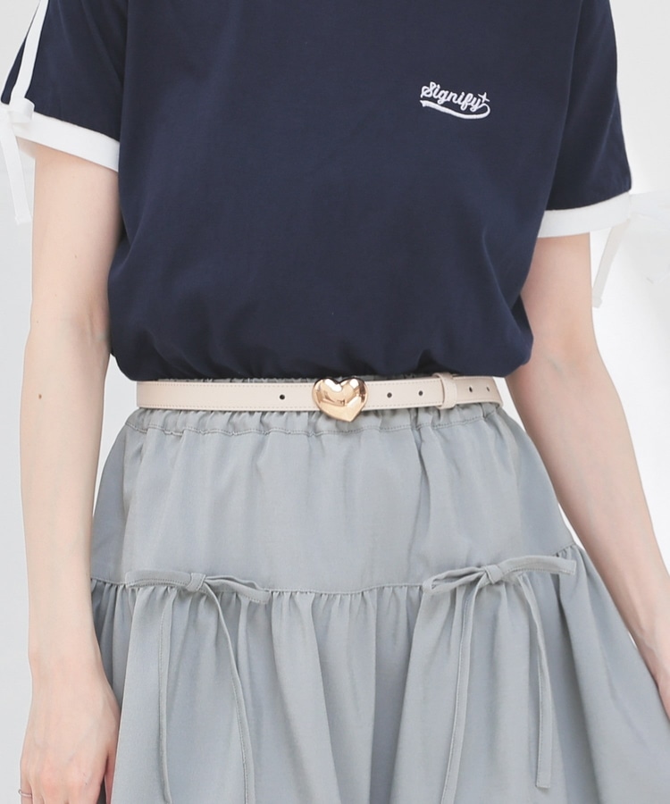 細めのシンプルなデザインにハートモチーフがキュートなアクセント。