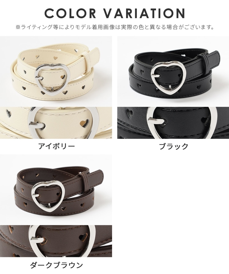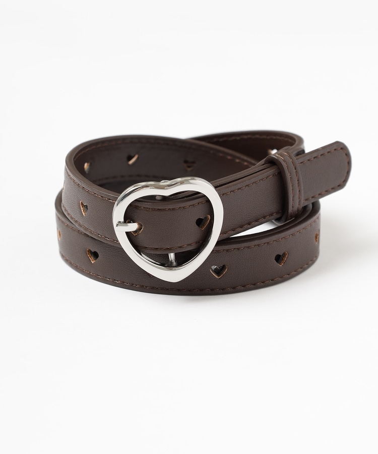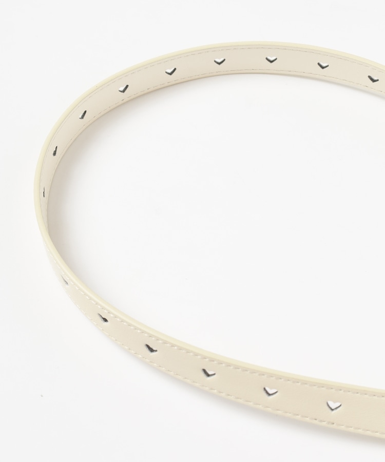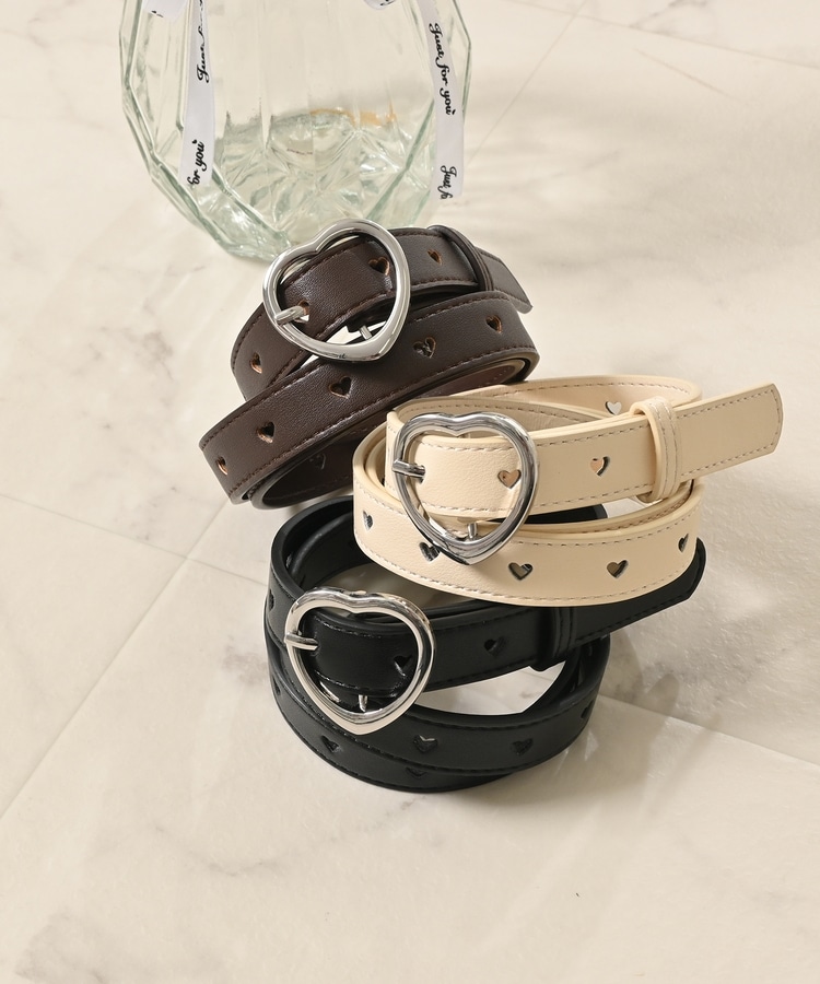 バックルとホールがハート型の、普段のコーデに遊び心を加えるキュートなデザイン。
