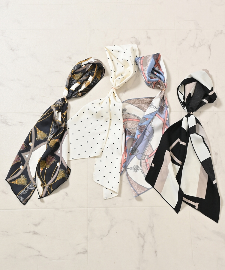 細めの幅で、首元にはもちろん、リボン結びでヘアアクセにしたり、バッグに巻いたりと手軽にアレンジ可能♪