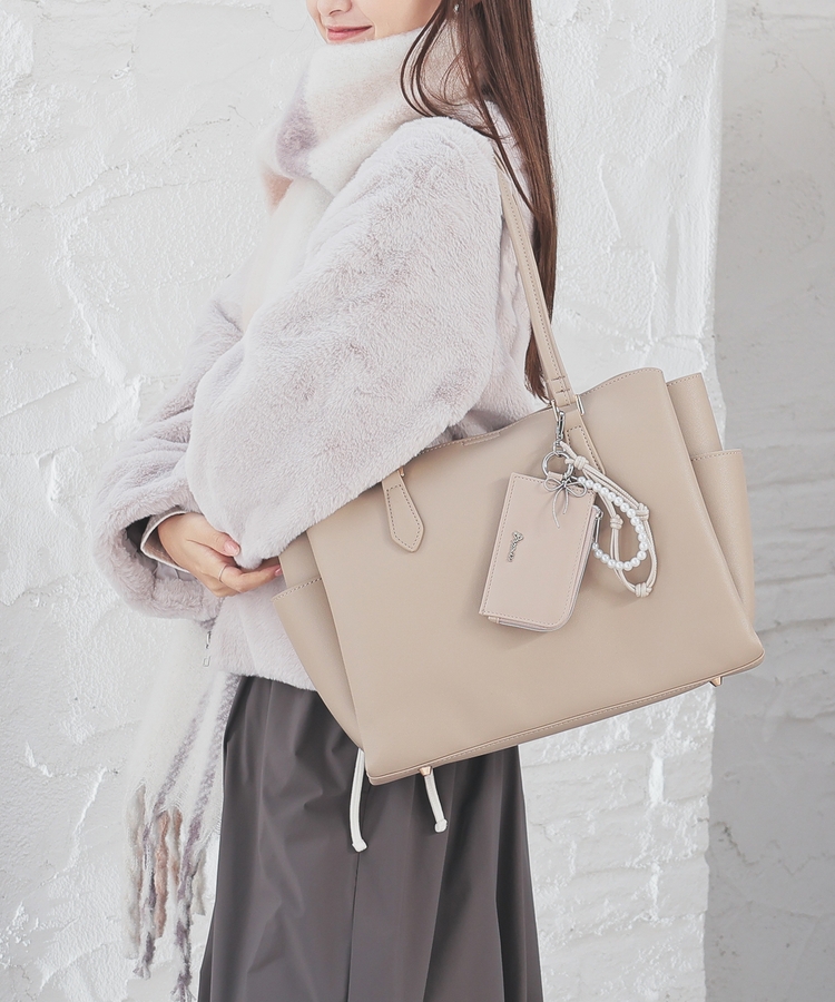 バッグにも装着可能なキーリングと、チャーム付き。