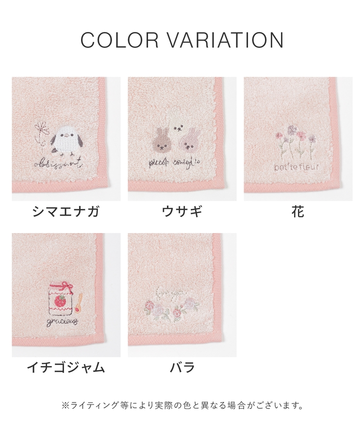 使うたびにほっこりする、キュートなワンポイント刺繍。