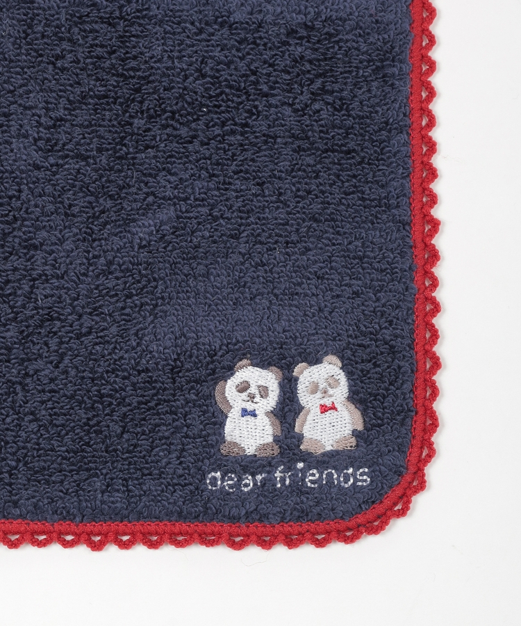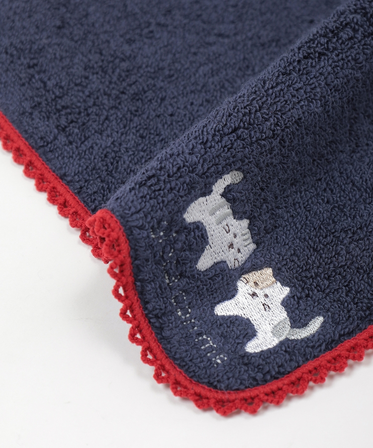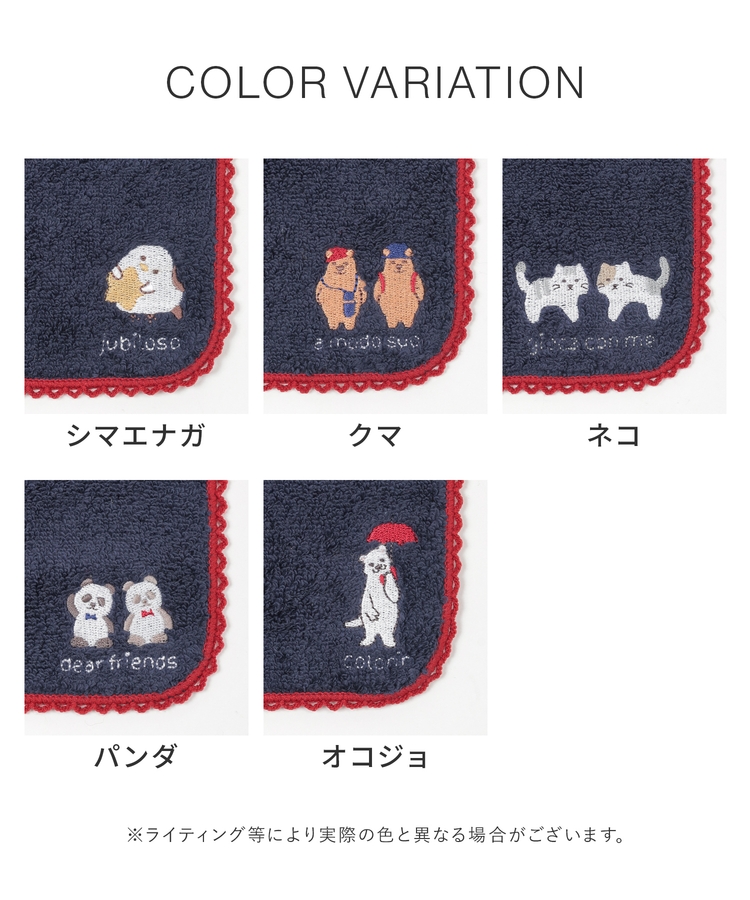 アニマルのキュートな刺繍とレースの縁取りがフェミニンなデザイン。