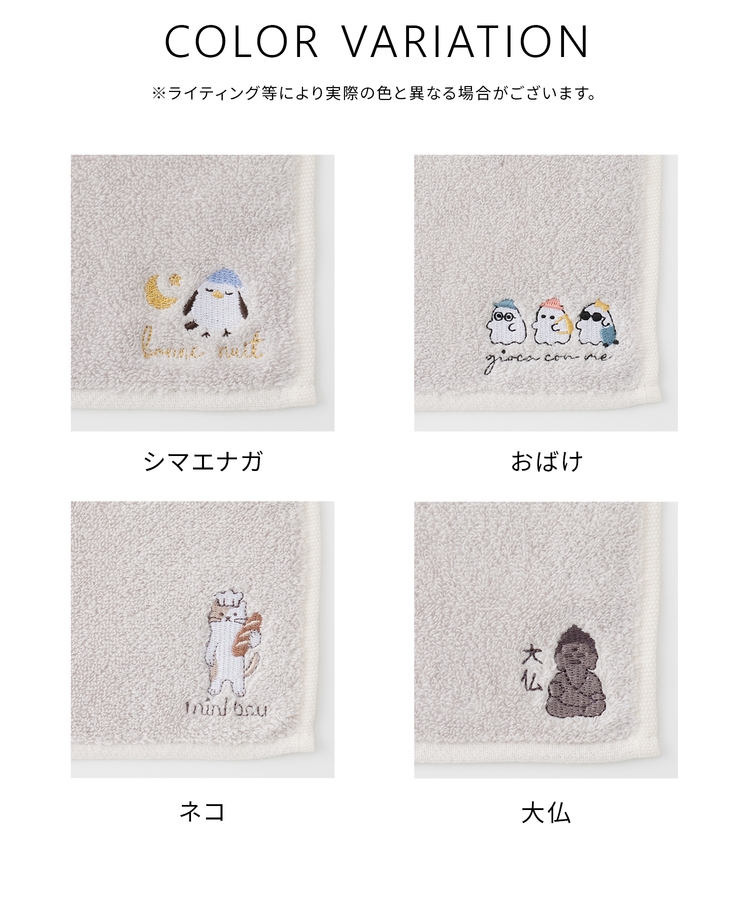 使うたびにほっこりする、ユニークなワンポイント刺繍。