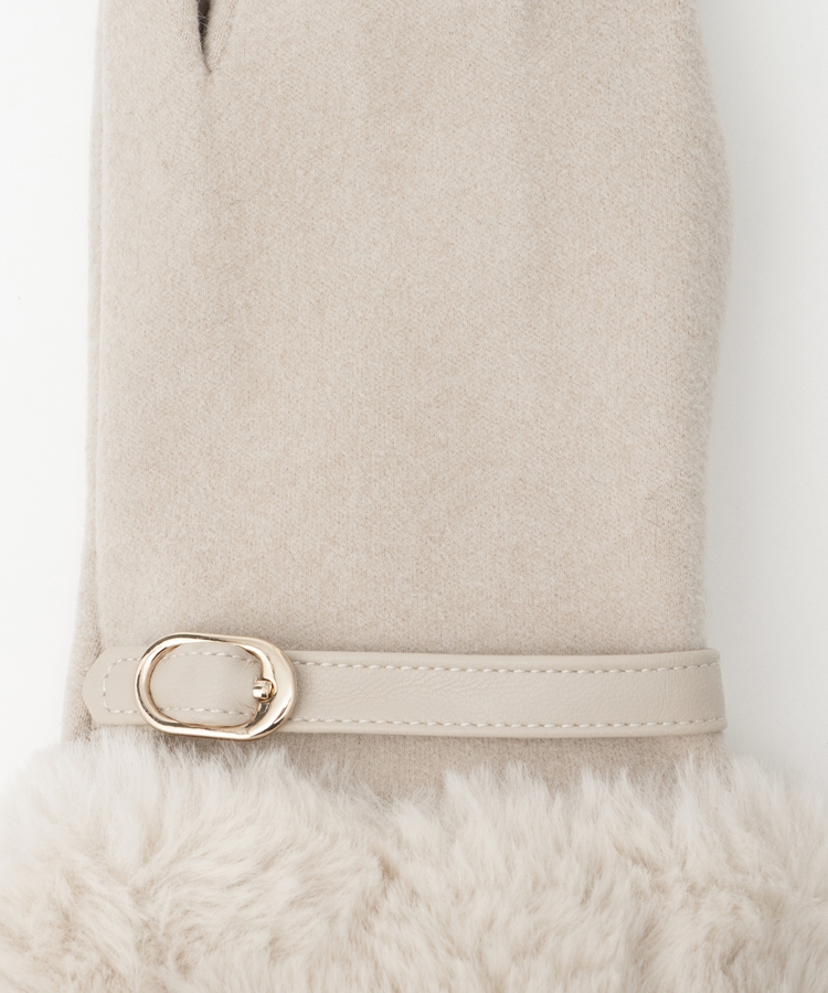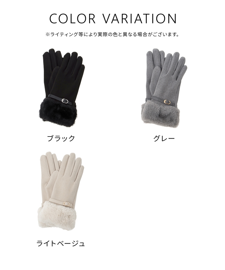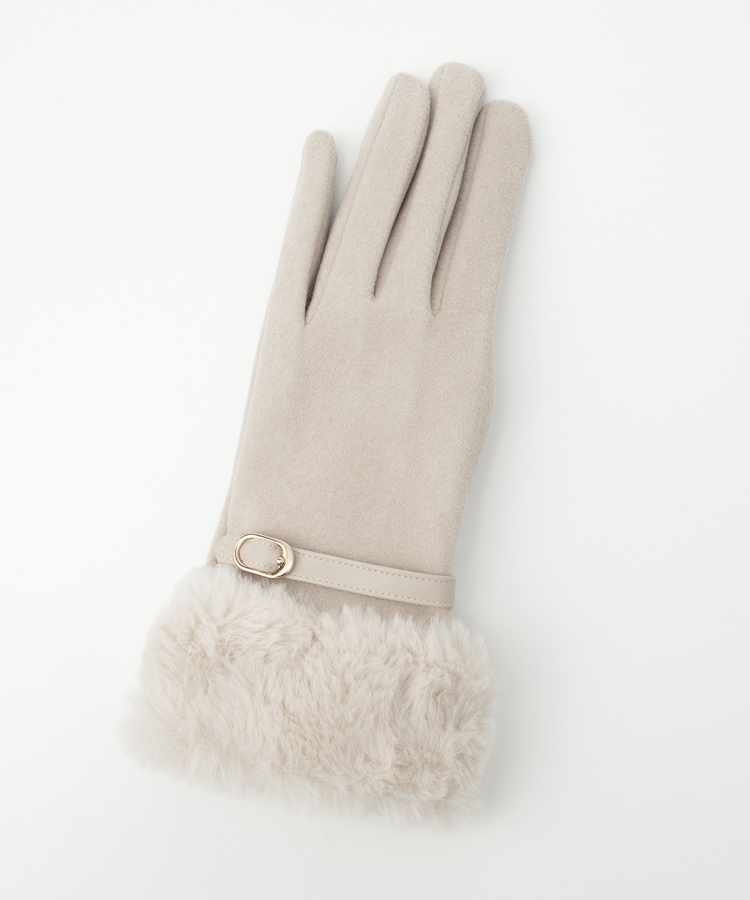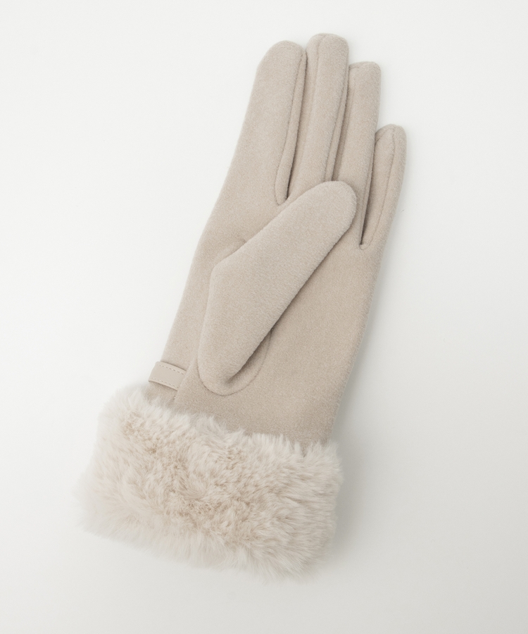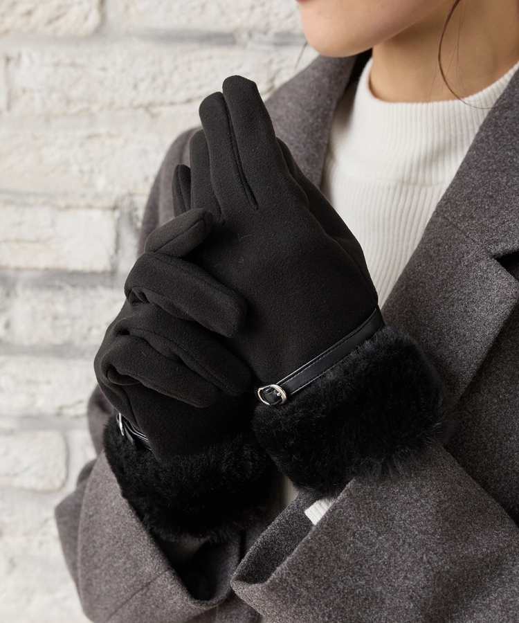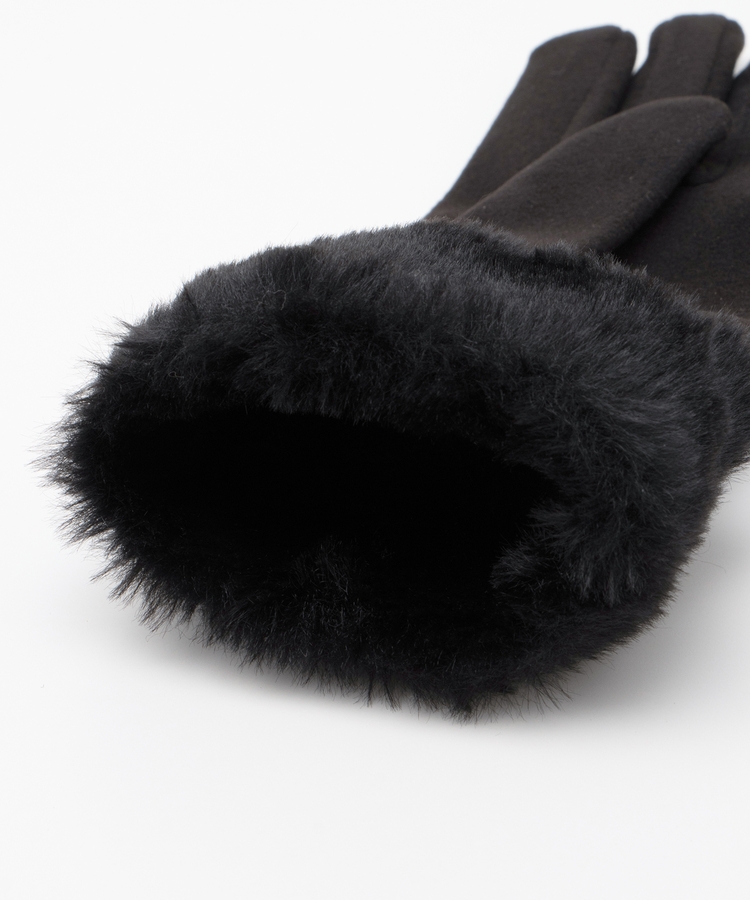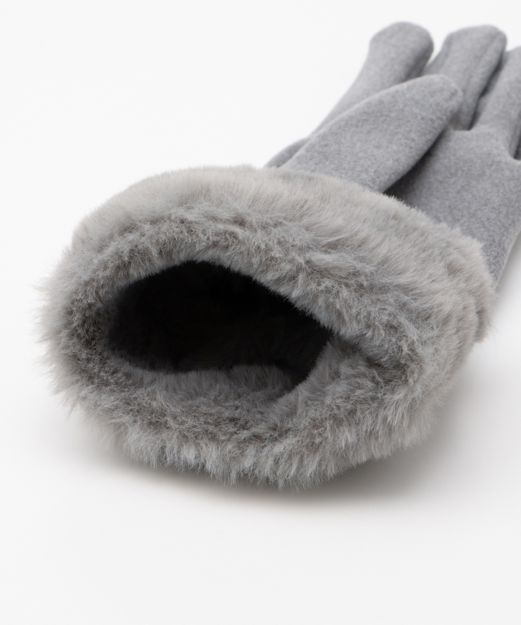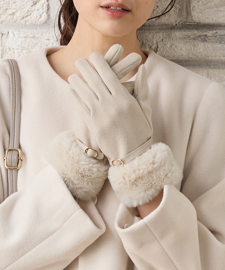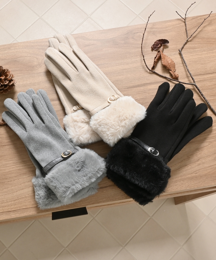 手首を優しく包み込んで冷気の侵入を防ぐ、エレガントなフェイクファー付きデザイン。