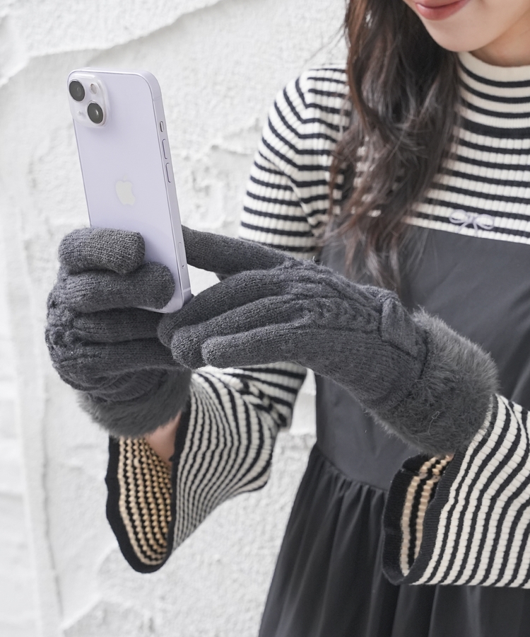 親指と人差し指の先に入れた導電糸で、着用したままスマホの操作が可能。
