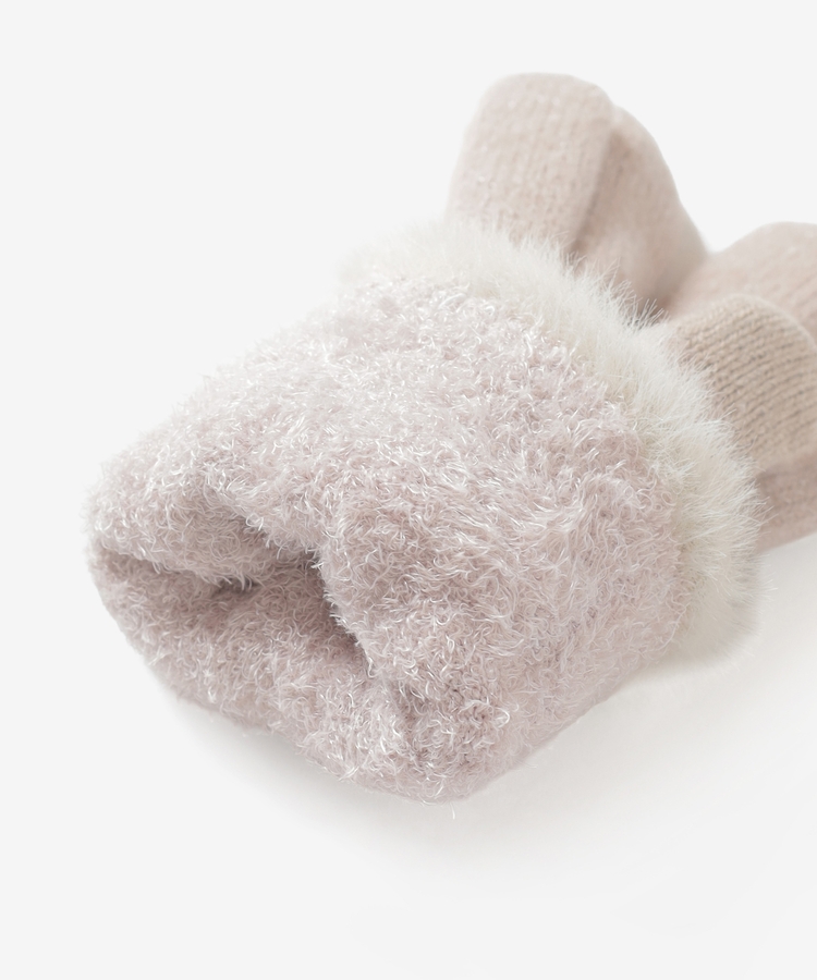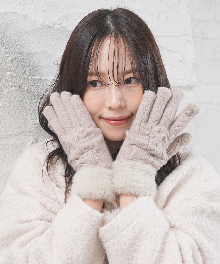 表地はあたたかみのあるニット素材、裏地はシャギー素材の『ハニぽか』アイテム。