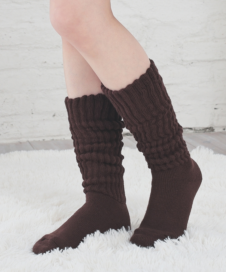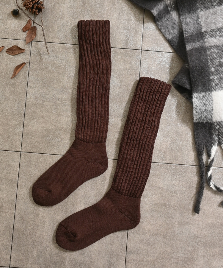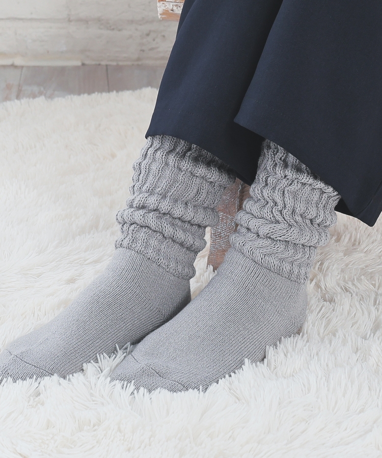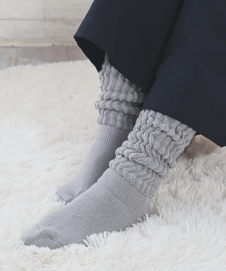 締め付け感のない、ゆったりしたリブ編みで、リラクシーなはき心地。