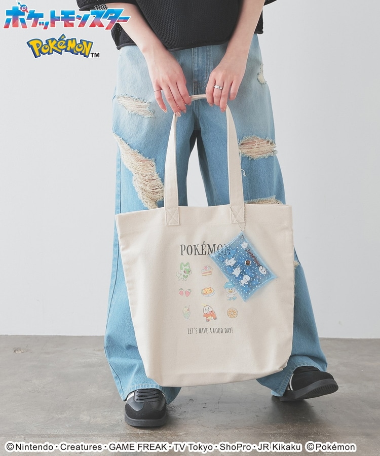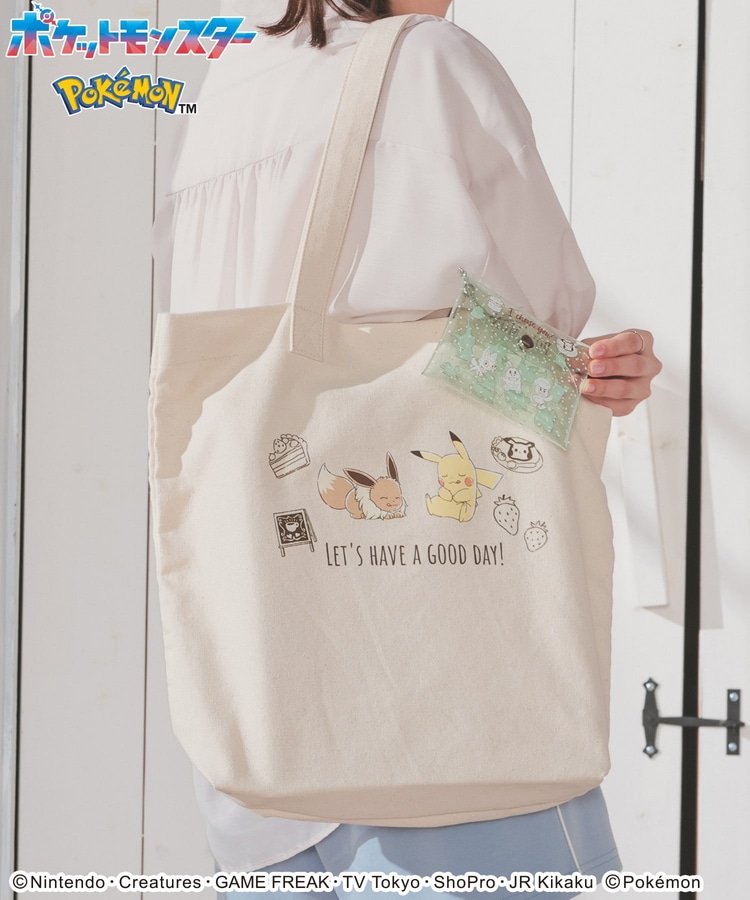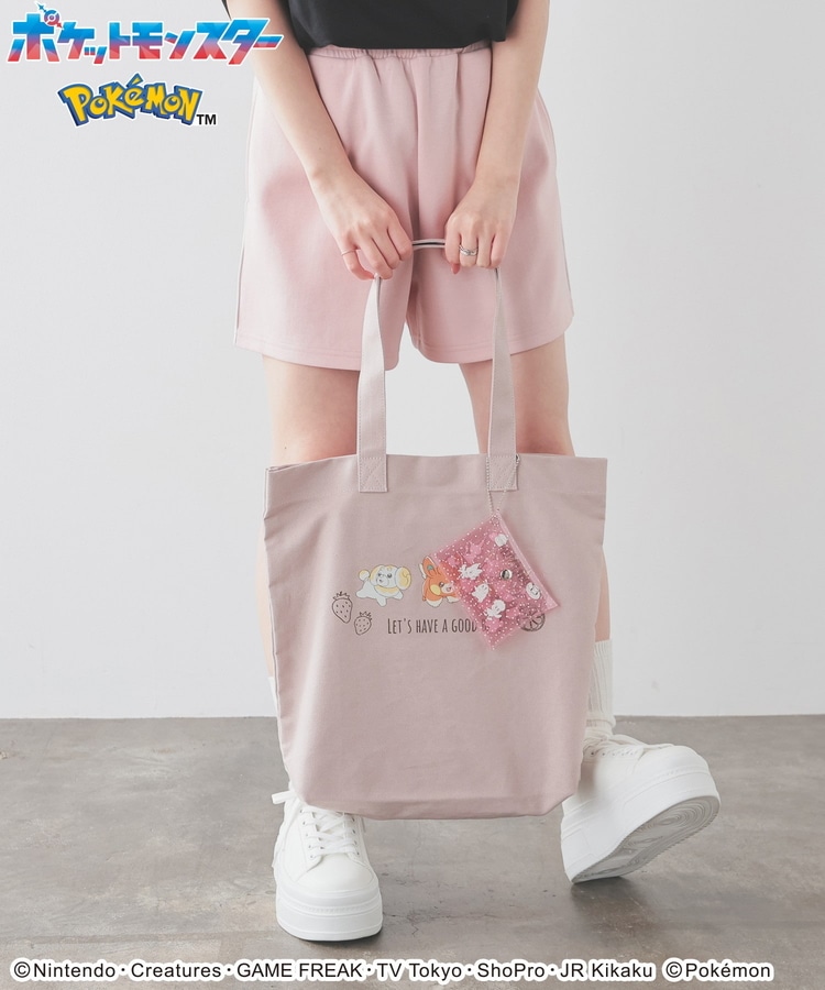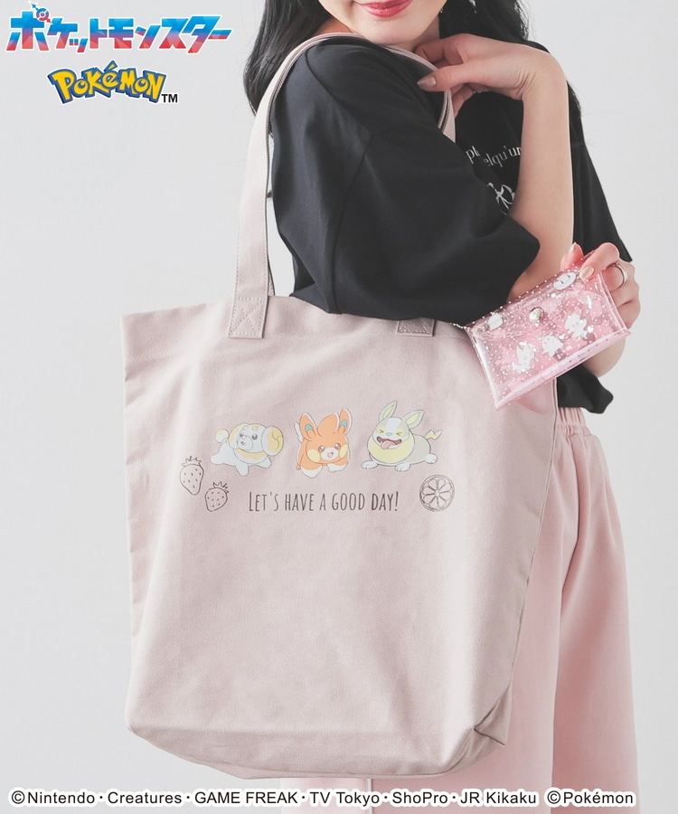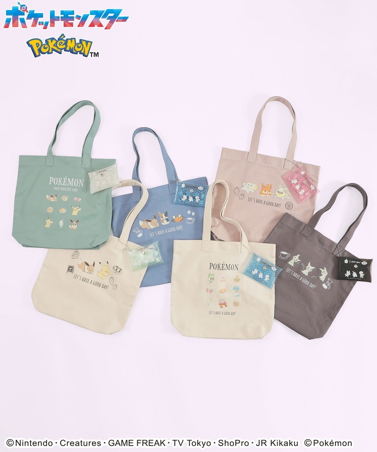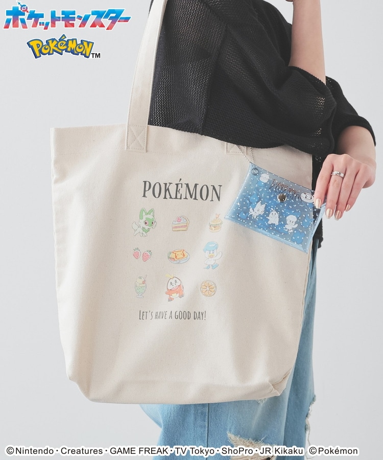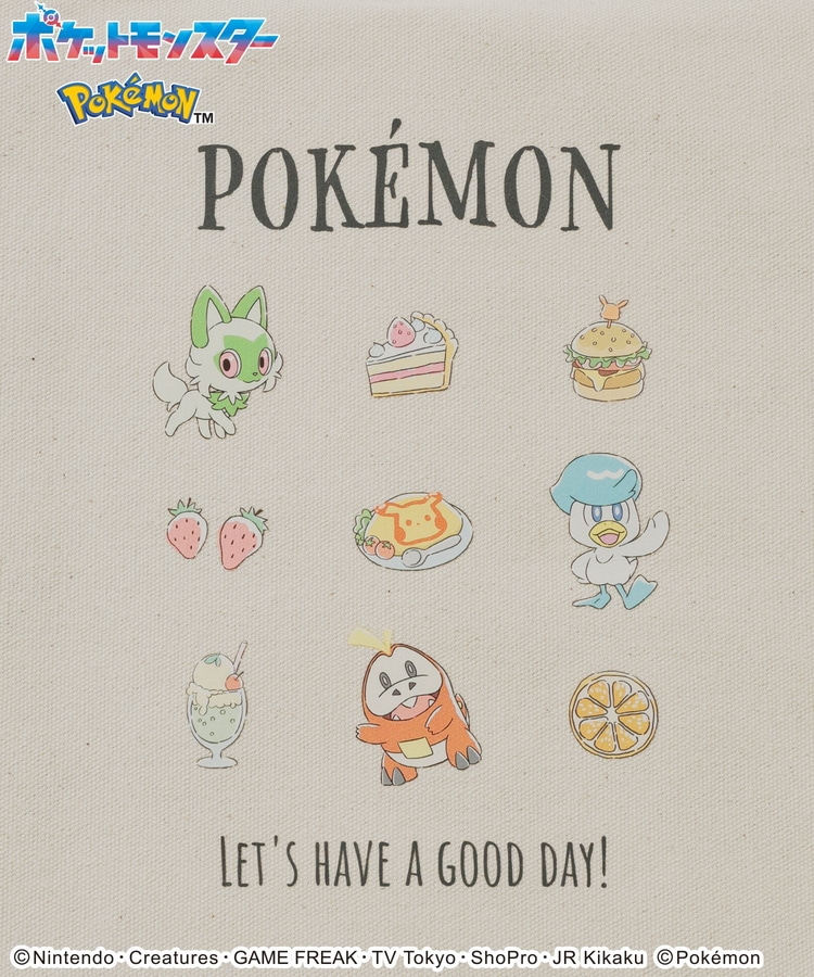 柔らかなタッチで描かれたポケモンたちのプリントがキュートなデザイン。