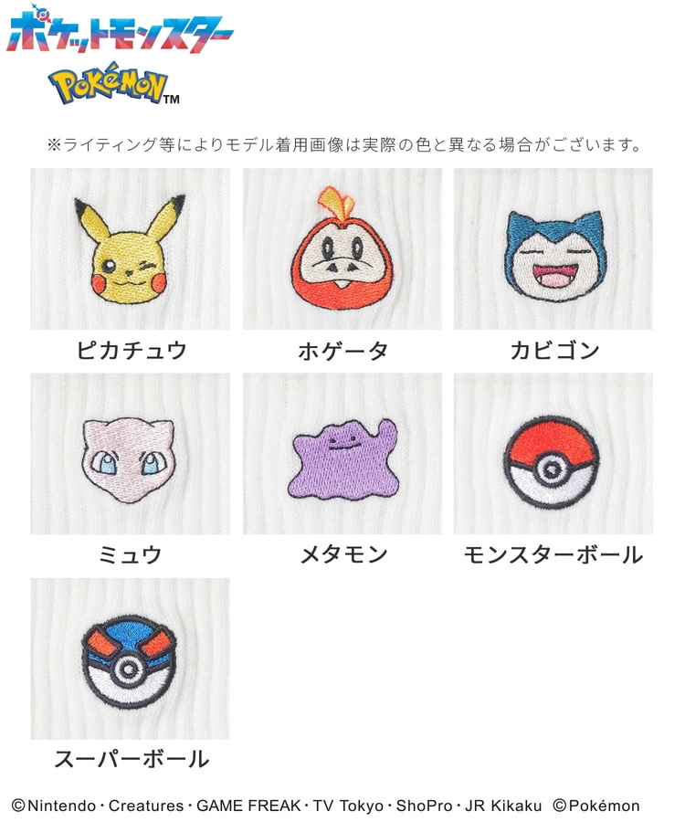 世界中で愛されるポケモンたちのキュートなワンポイント刺繍。