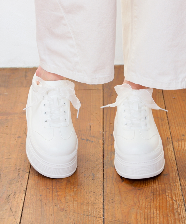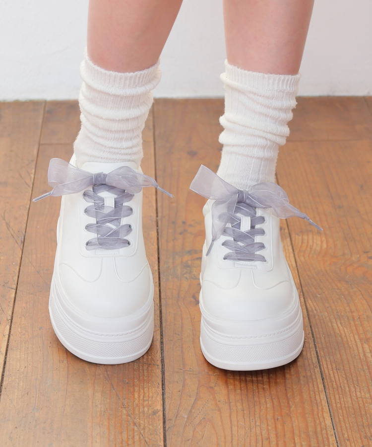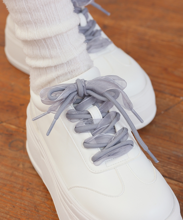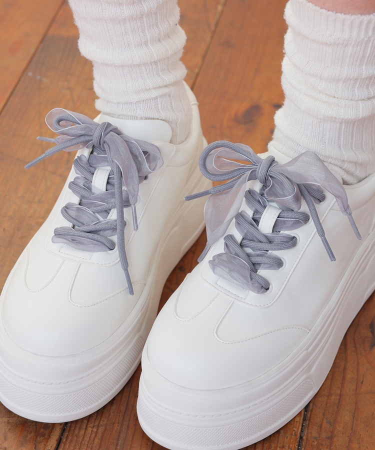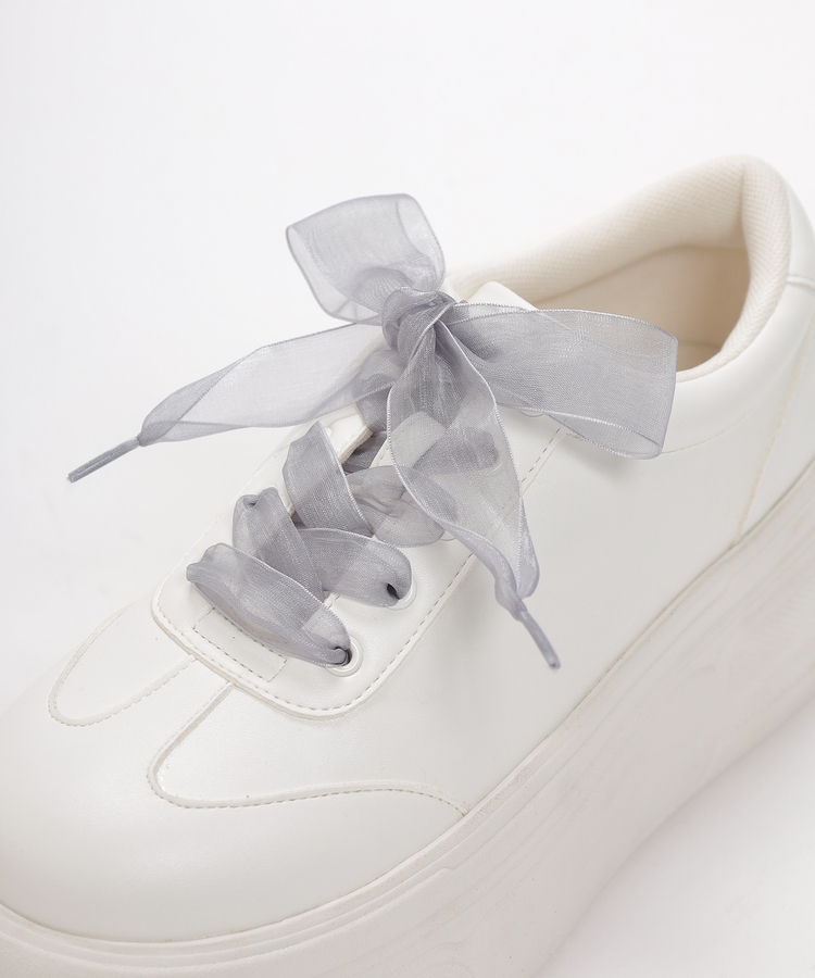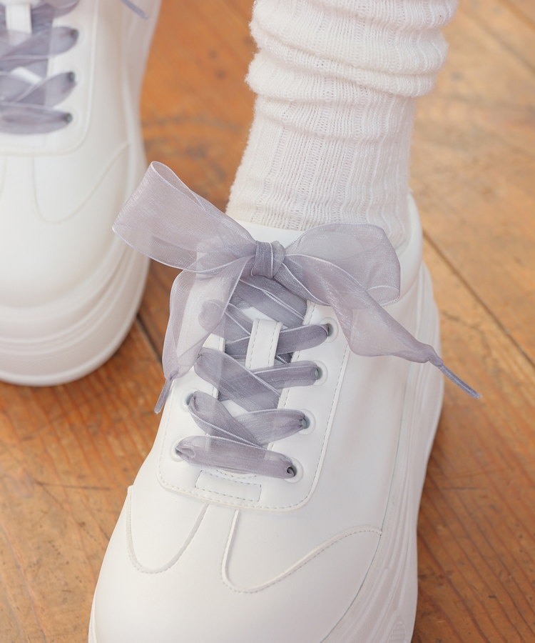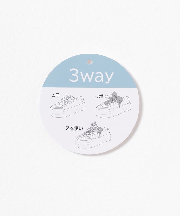 2種類の靴ひも付きで、丸紐・オーガンジーリボン紐・2本使いの3Wayで楽しめるデザイン。