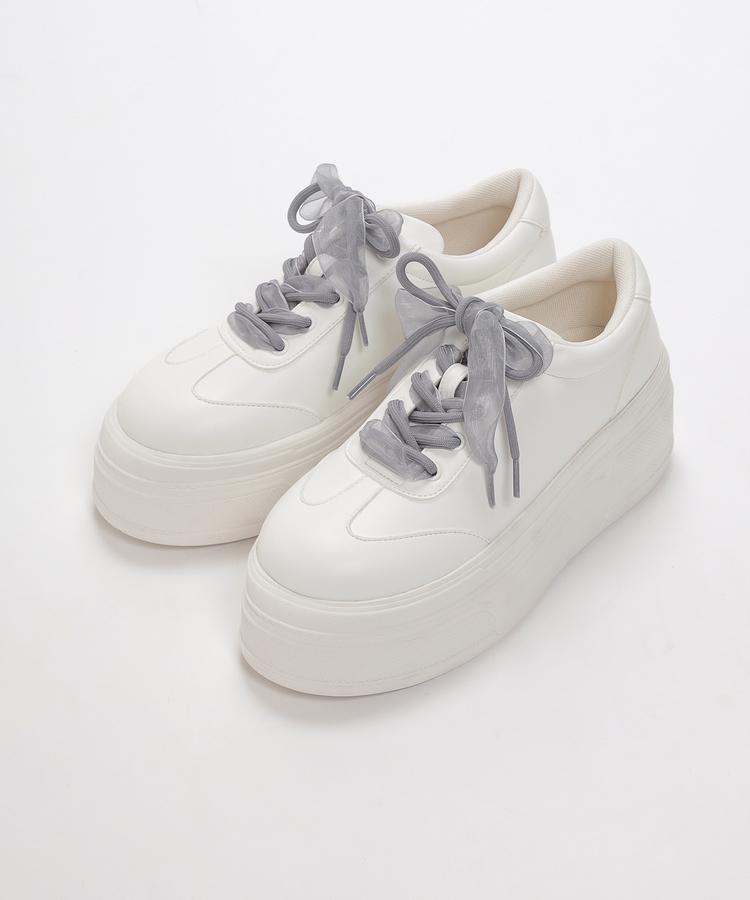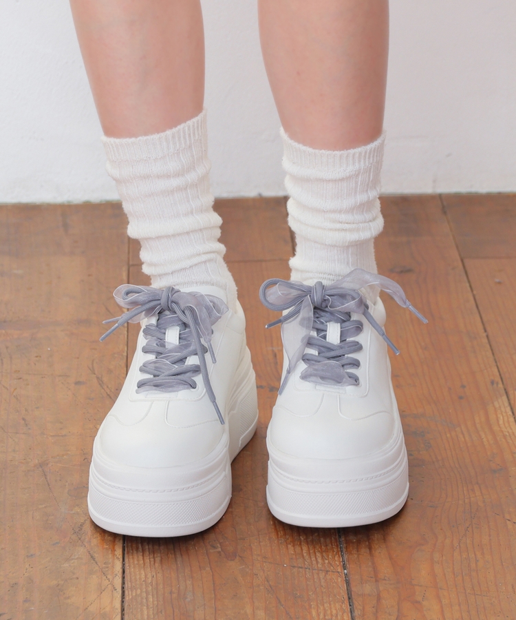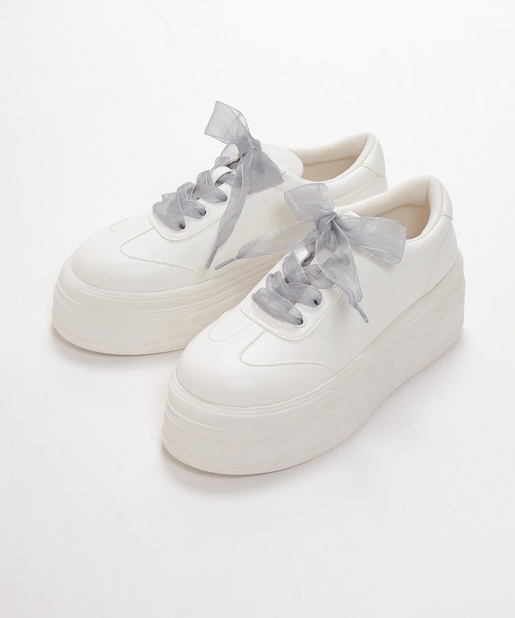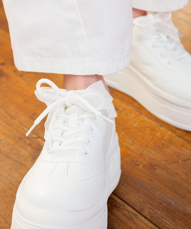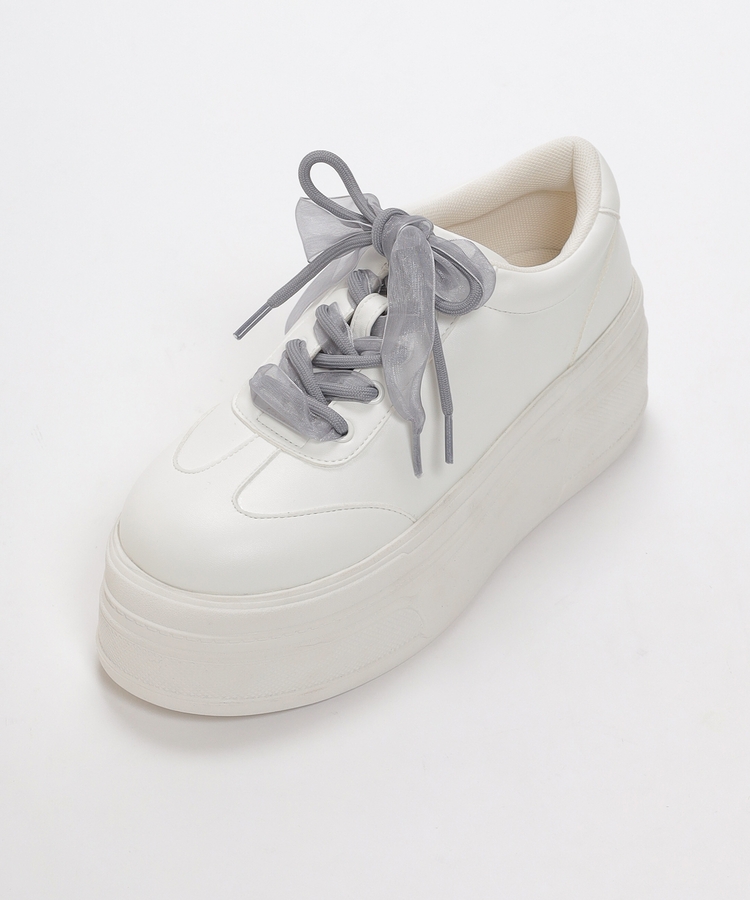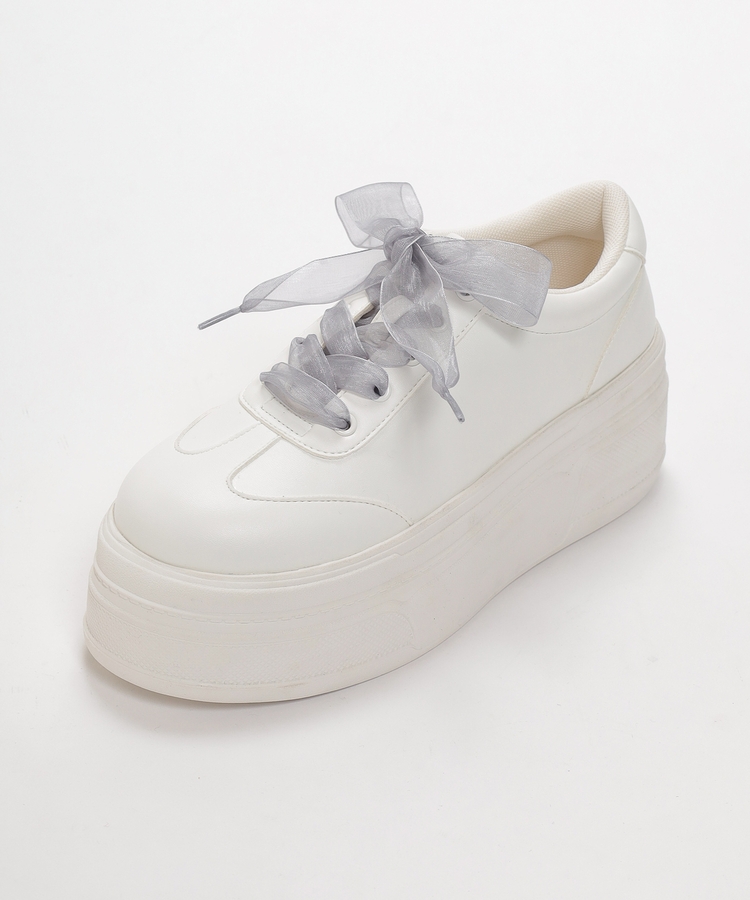 2種類の靴ひも付きで、丸紐・オーガンジーリボン紐・2本使いの3Wayで楽しめるデザイン。