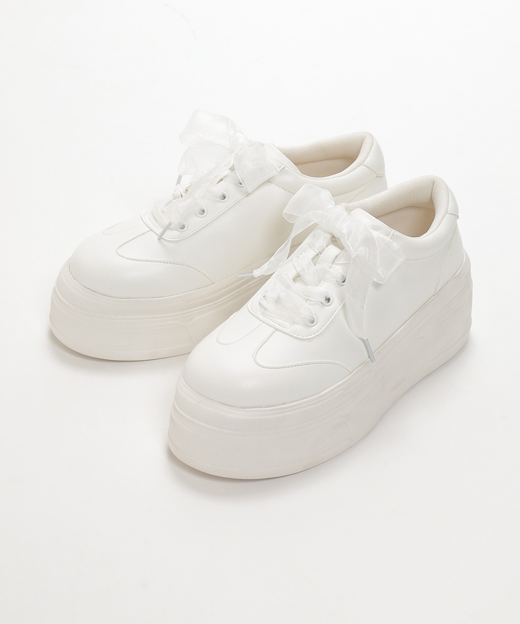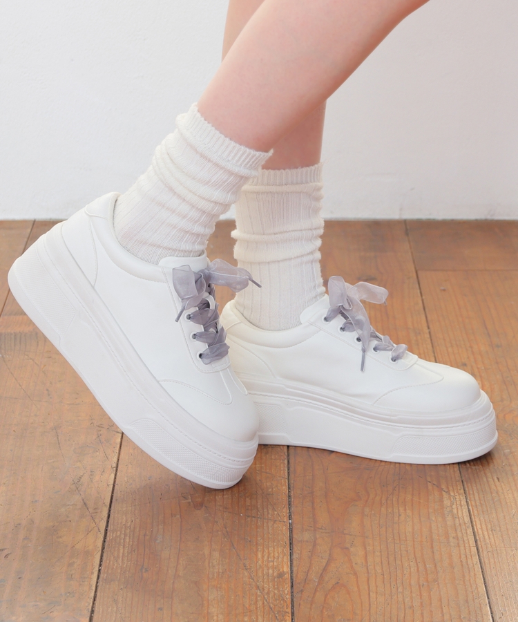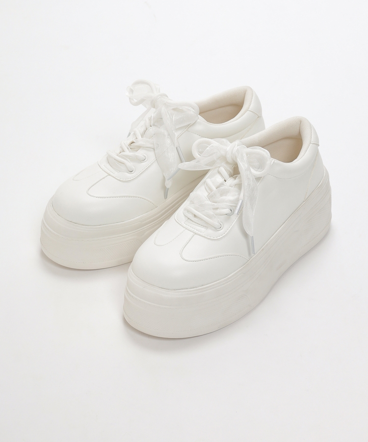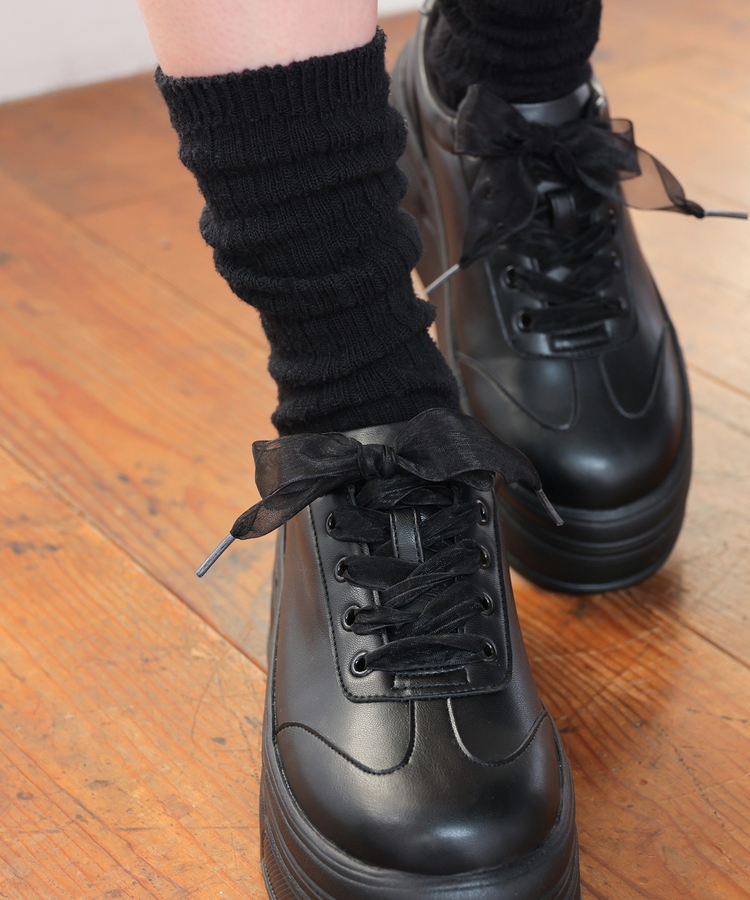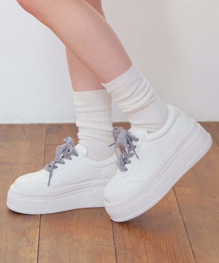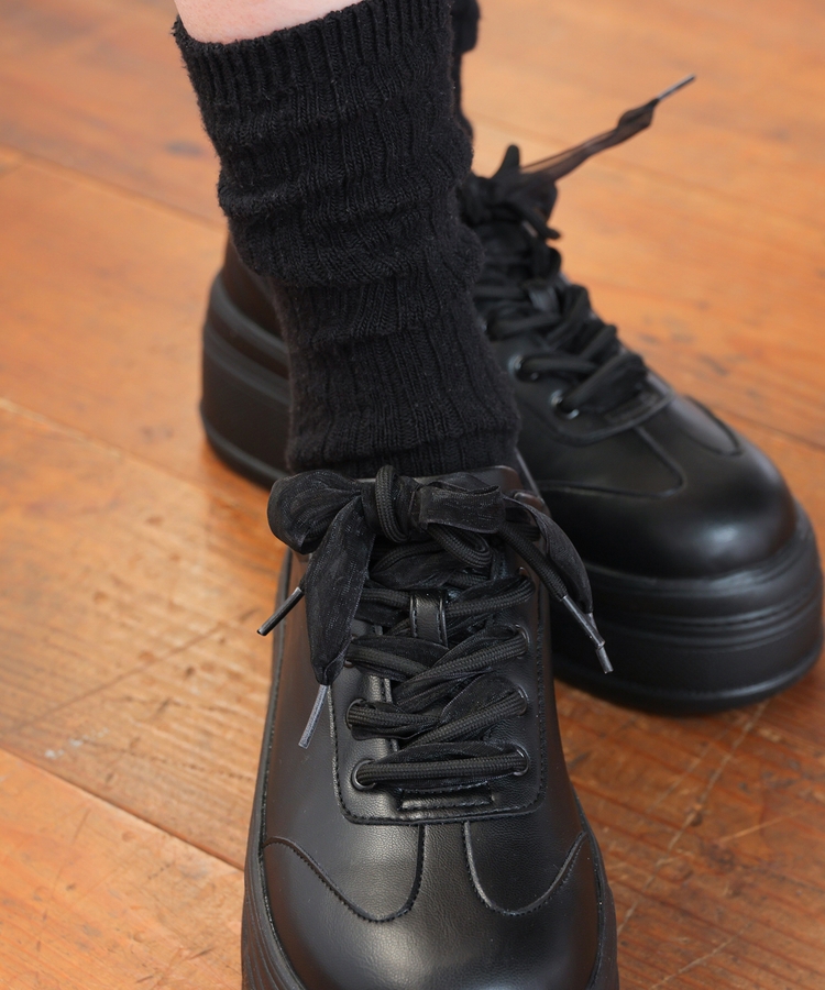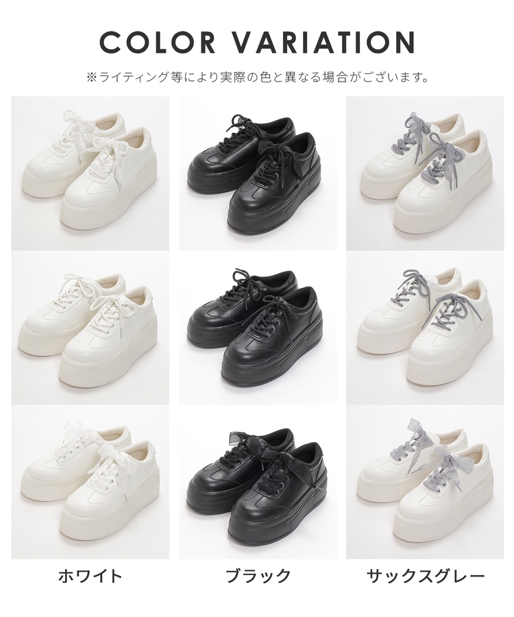 2種類の靴ひも付きで、丸紐・オーガンジーリボン紐・2本使いの3Wayで楽しめるデザイン。