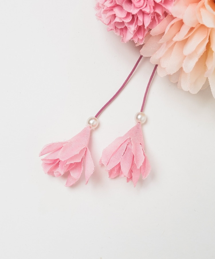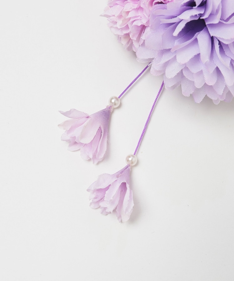 揺れる花びらとパールビーズがヘアスタイルを華やかに演出。