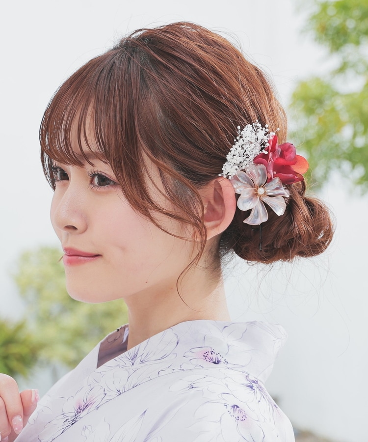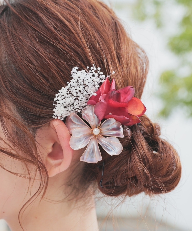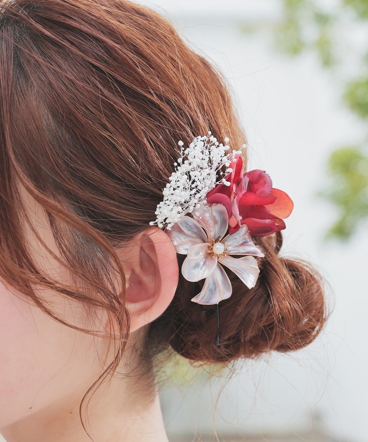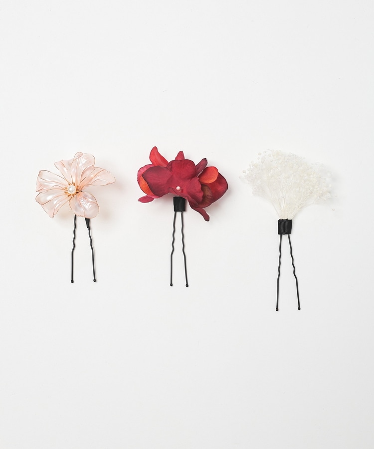 まとめて差してボリュームを楽しんだり、散らばせたりと、簡単に可愛らしいヘアアレンジが可能。