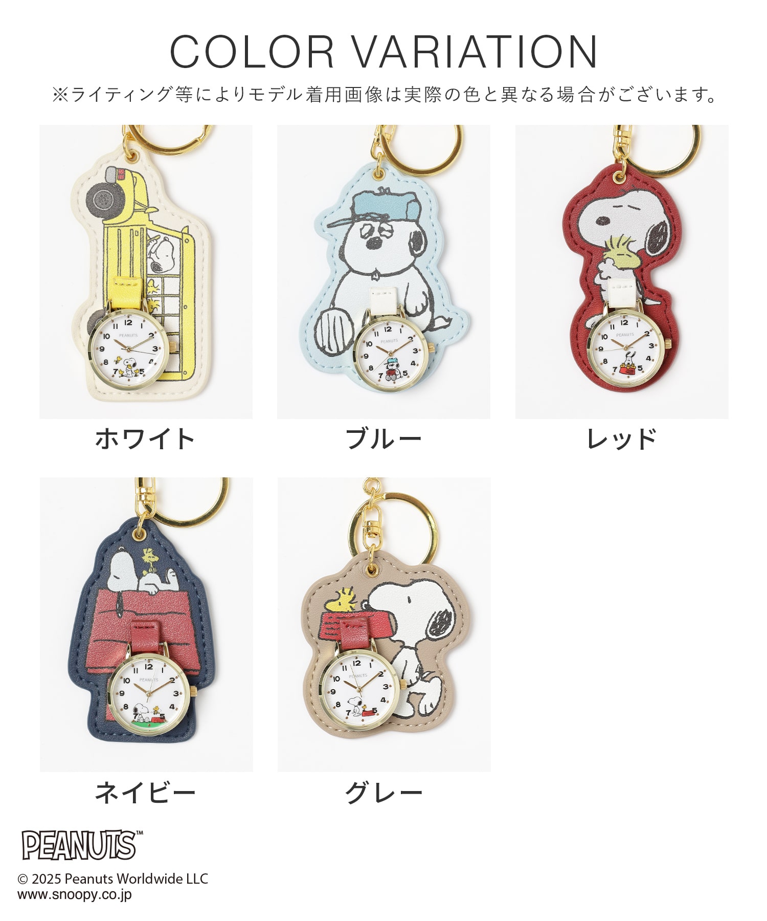 「スヌーピー」や仲間たちのダイカットチャームがキュートなデザイン。