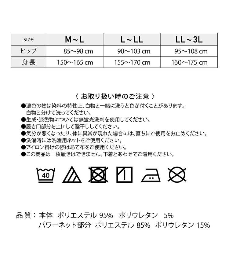 ●品質/本体 ポリエステル 95%・ポリウレタン 5%・パワーネット部分 ポリエステル 85%・ポリウレタン 15%