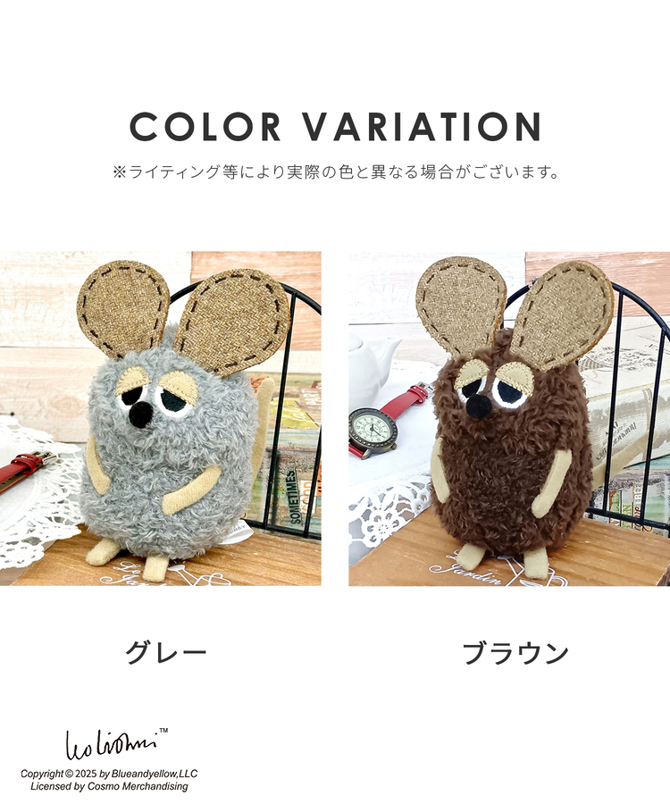 耳と目元のステッチがチャームポイント。やさしいグレーの毛並みに癒されます。