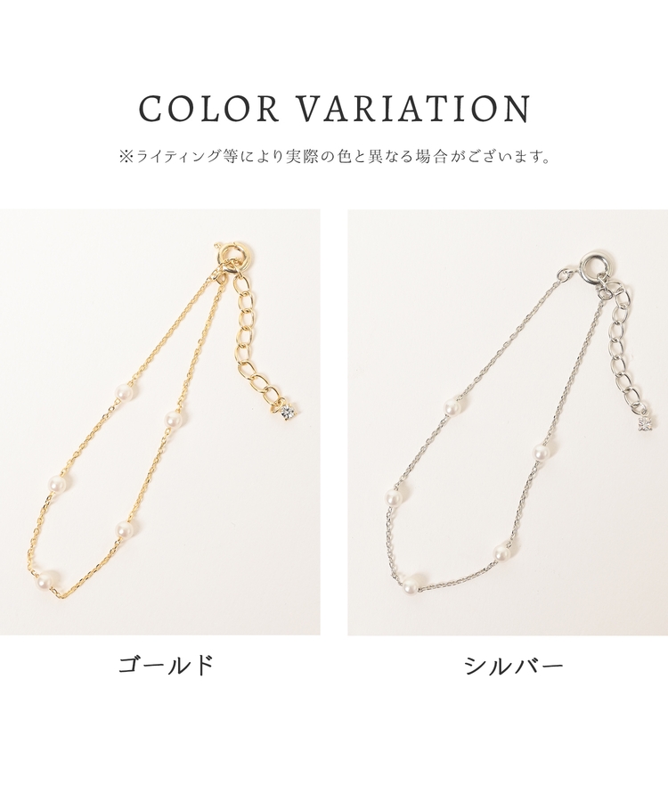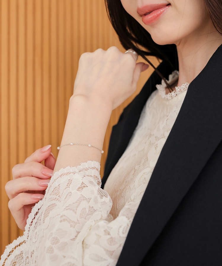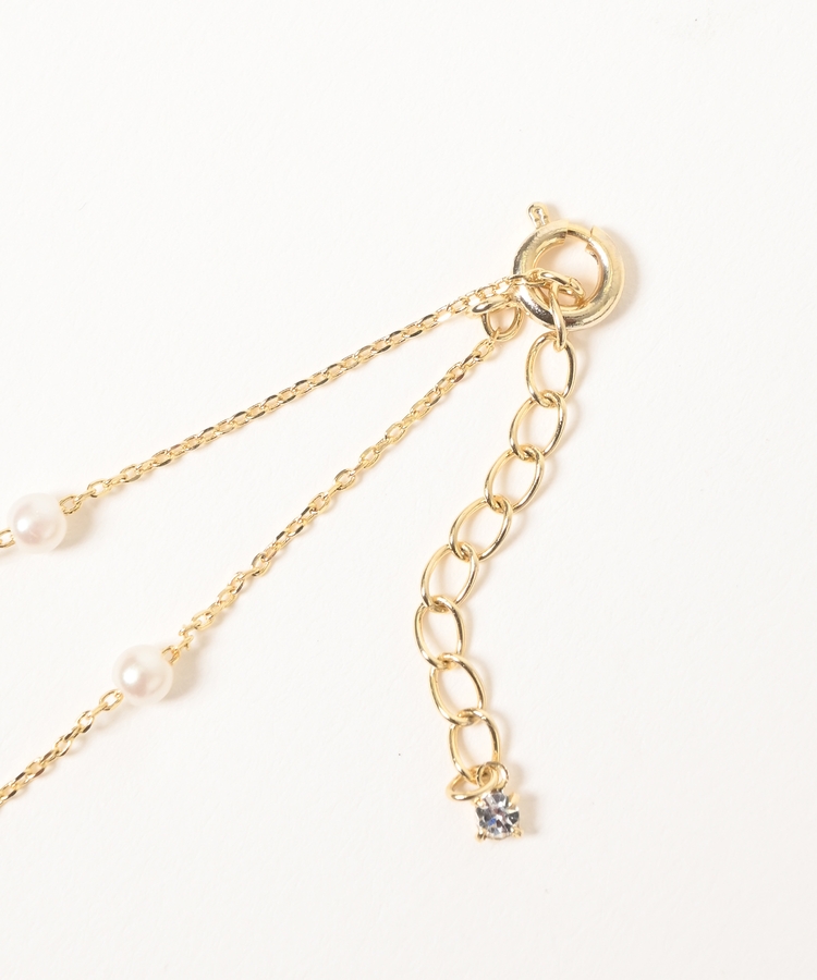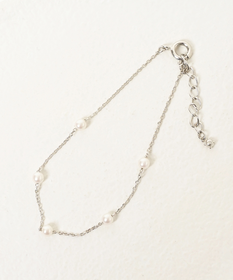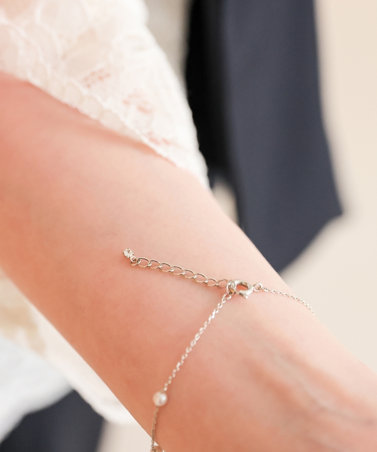 細めチェーンにパール風ビーズを添えた、手首の華奢見せを叶える上品なデザイン。