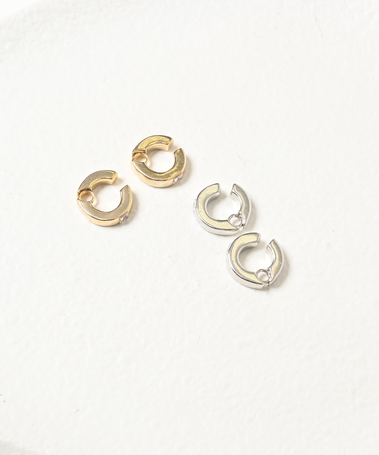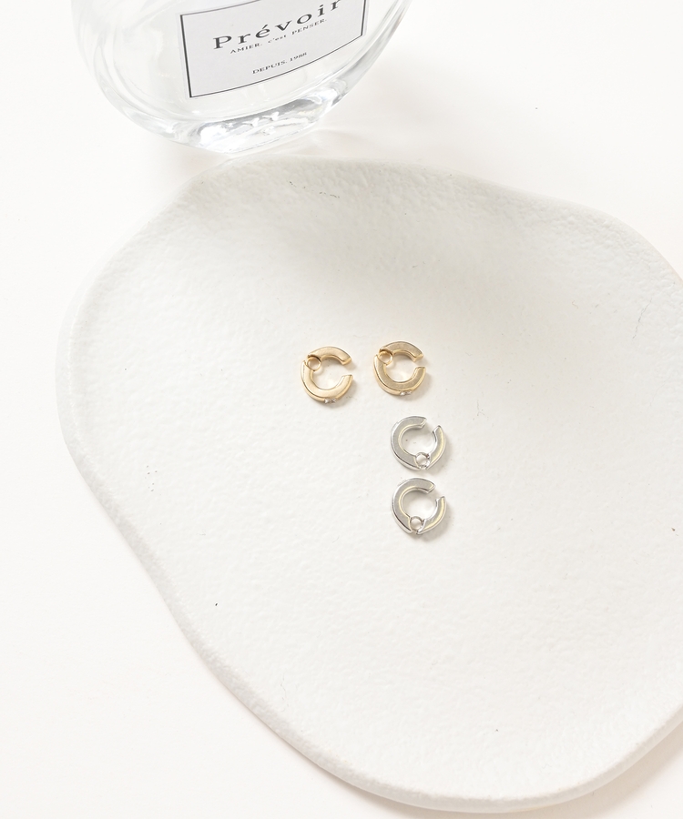 小さめの太フープにビジューを1粒埋め込んだ上品なデザイン。